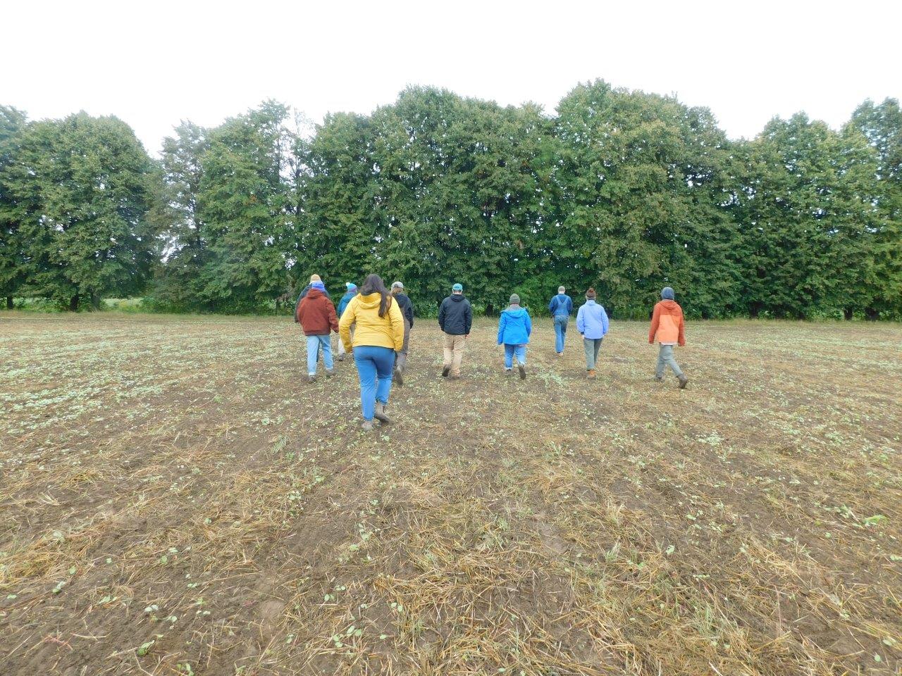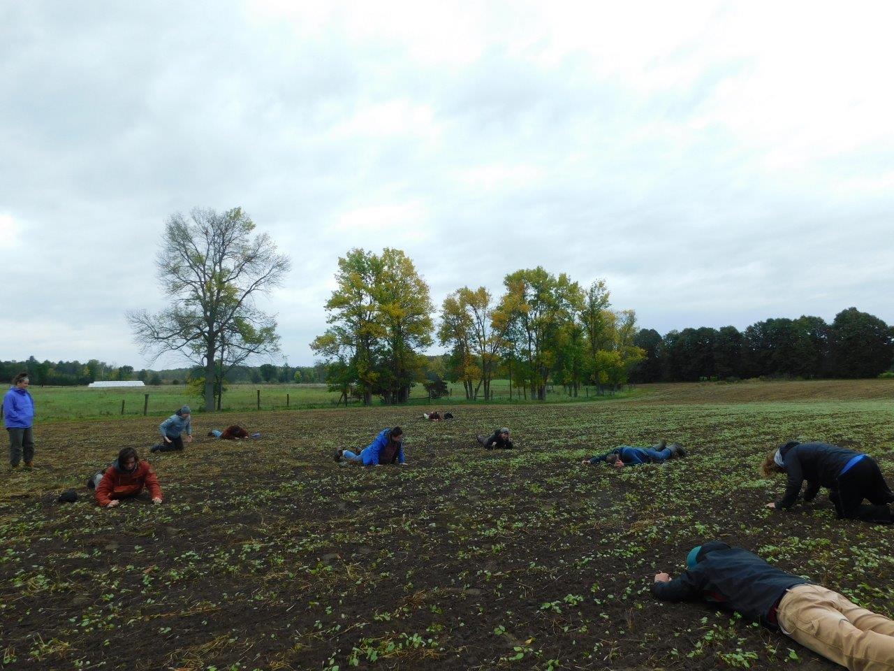 When Mark asked us what we wanted to see, and Roisin responded “soil,” Mark took off running, his boots thumping, and we chased him across the fields. Once out in an empty field, he instructed us to bury our faces in the dirt. As we breathed in the nutrient-rich soil, Mark began to explain how different the soil can be depending on the conditions, inputs, and depth. The deeper our faces went in, the more we’d uncover. Just like how sitting around the kitchen table, around a campfire, or in the sauna, we had begun to uncover deeper layers of our Arcadian community.
