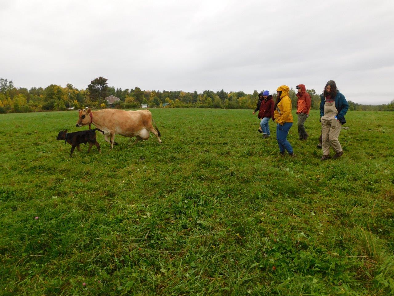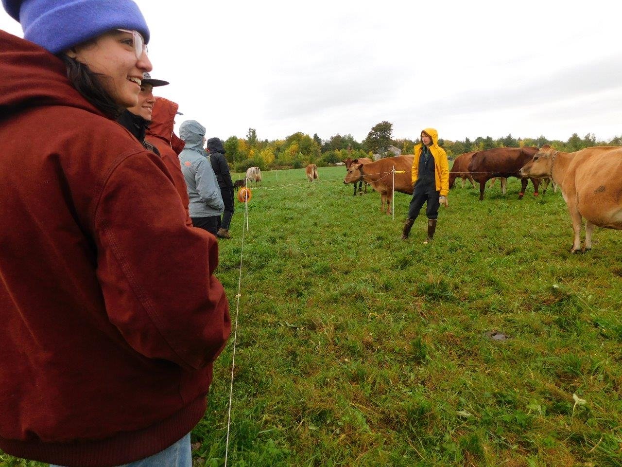 The myth that farmers rise early was proven a reality the following morning. We weren’t awakened by a rooster but rather by the sound of fresh dairy products being made right next to where we slept. Ashlee Kleinhammer, one of the owners of North Country Creamery, joined us for breakfast and began to tell us about the operations. Gulping down the last sips of coffee, she took us on a tour of the facilities. Arcadians assisted with moving the cows from the pasture into the milk barn.