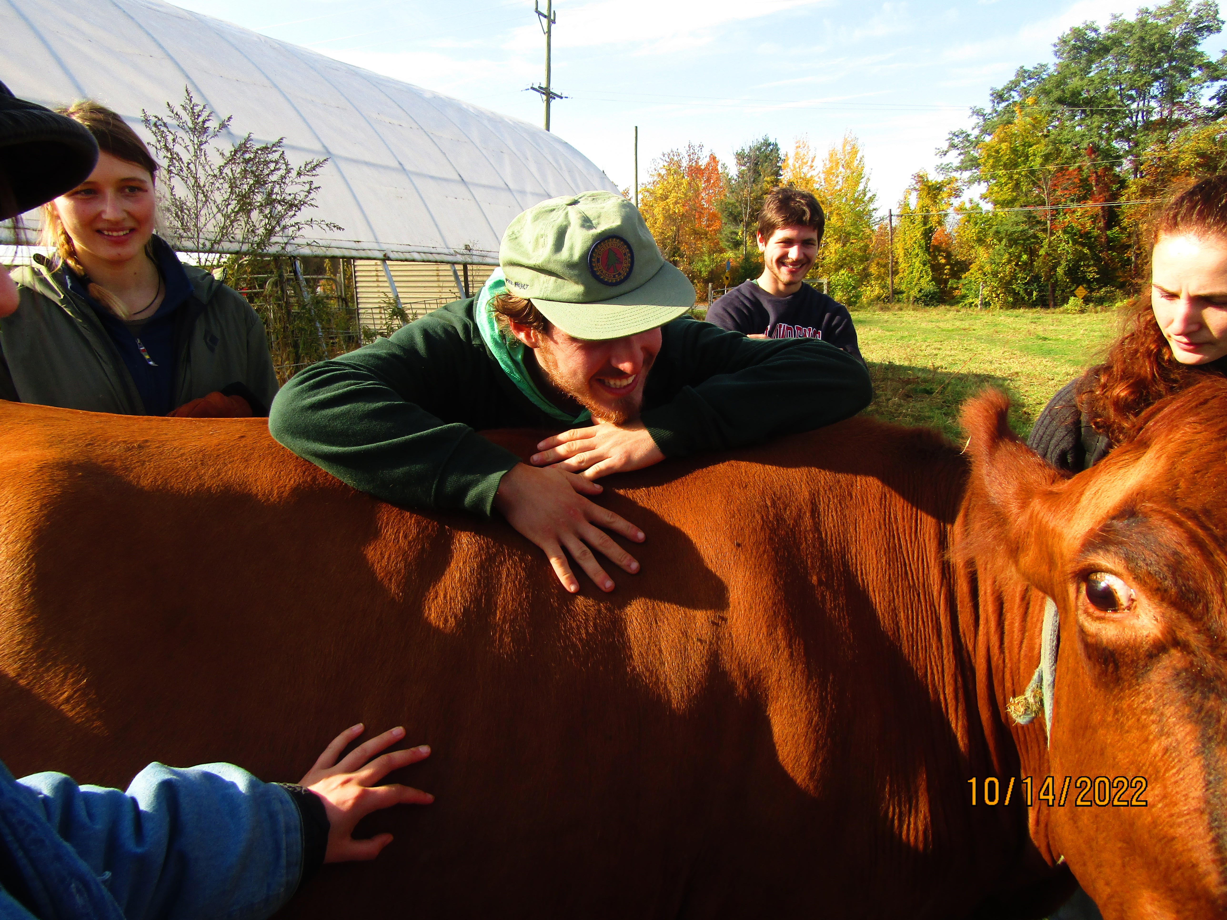 After waking up damp, we began our day the same way we had during the last sixty-five days: with fresh local yogurt and granola to top it off. Soon enough, we were directed over to the gates crossing the street, behind which teemed mounds of brown and white fur. Throughout the next couple of hours, we familiarized ourselves with the friendly cows under the guidance of Ashlee. She and the other farmers typically milk their thirty cows once or twice a day. We watched as the cows waited their turn in the milking line and gawked at the enormous volume each one produced. The milk gets used in a multitude of North Country Creamery products like yogurt, cheese, and ice cream. Its rich taste can be attributed to the ethical treatment the cows receive and the grass they feed on, which during our trip was occasionally supplemented by an apple from Grace, or five from Elder Autumn.