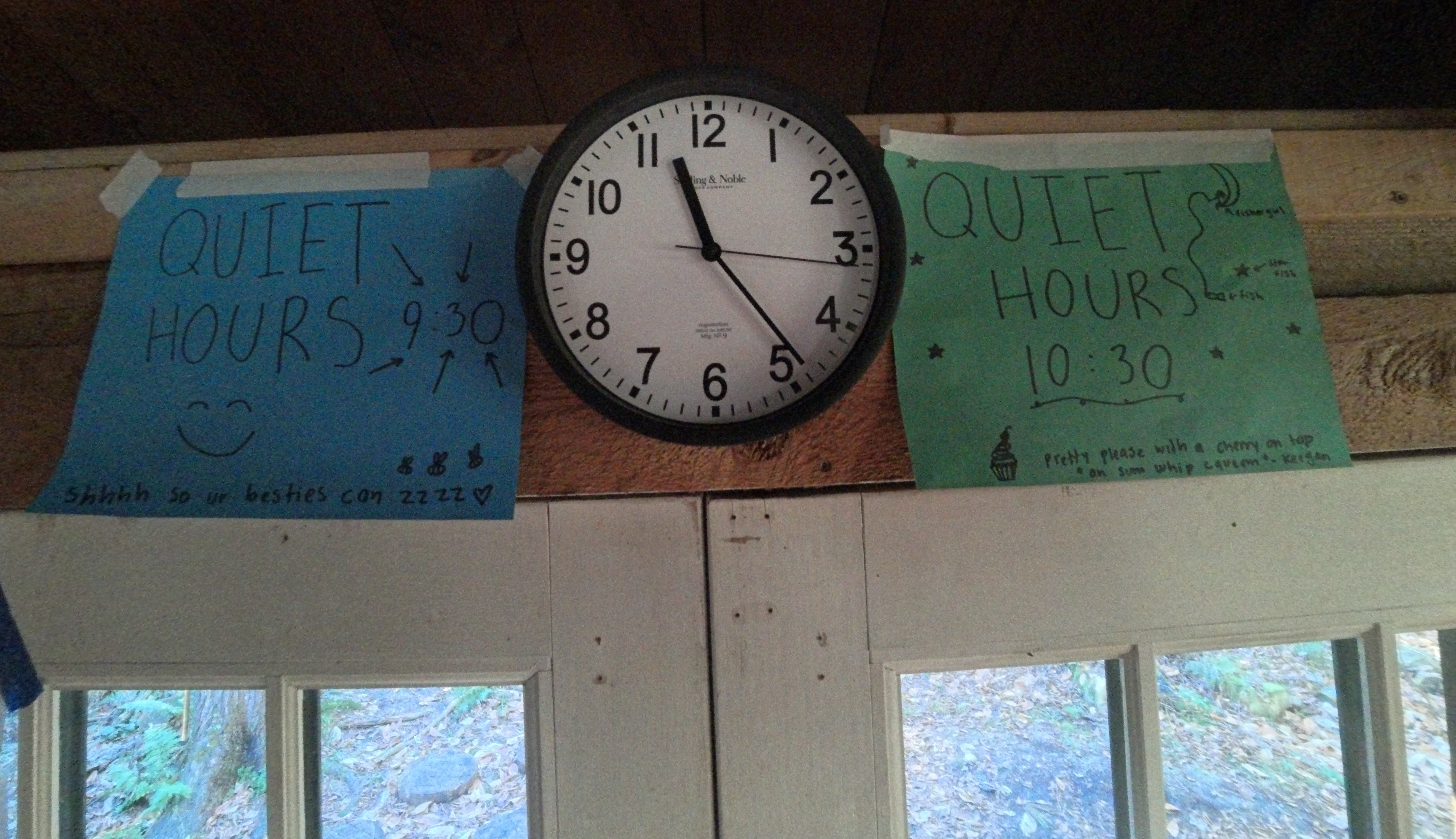 Intention with our voices is a constant effort. This includes respecting our nightly quiet hours. Every weeknight from 9:30pm until breakfast at 7:15am, we have quiet hours. This agreement allows Arcadians to sleep or enjoy silence in whatever form they desire while others converse at a low volume. We are a rowdy crew, but every night we gentle our voices because, as Arcadian Riley Gale says, “This is a place for both the very loud and the very quiet.”