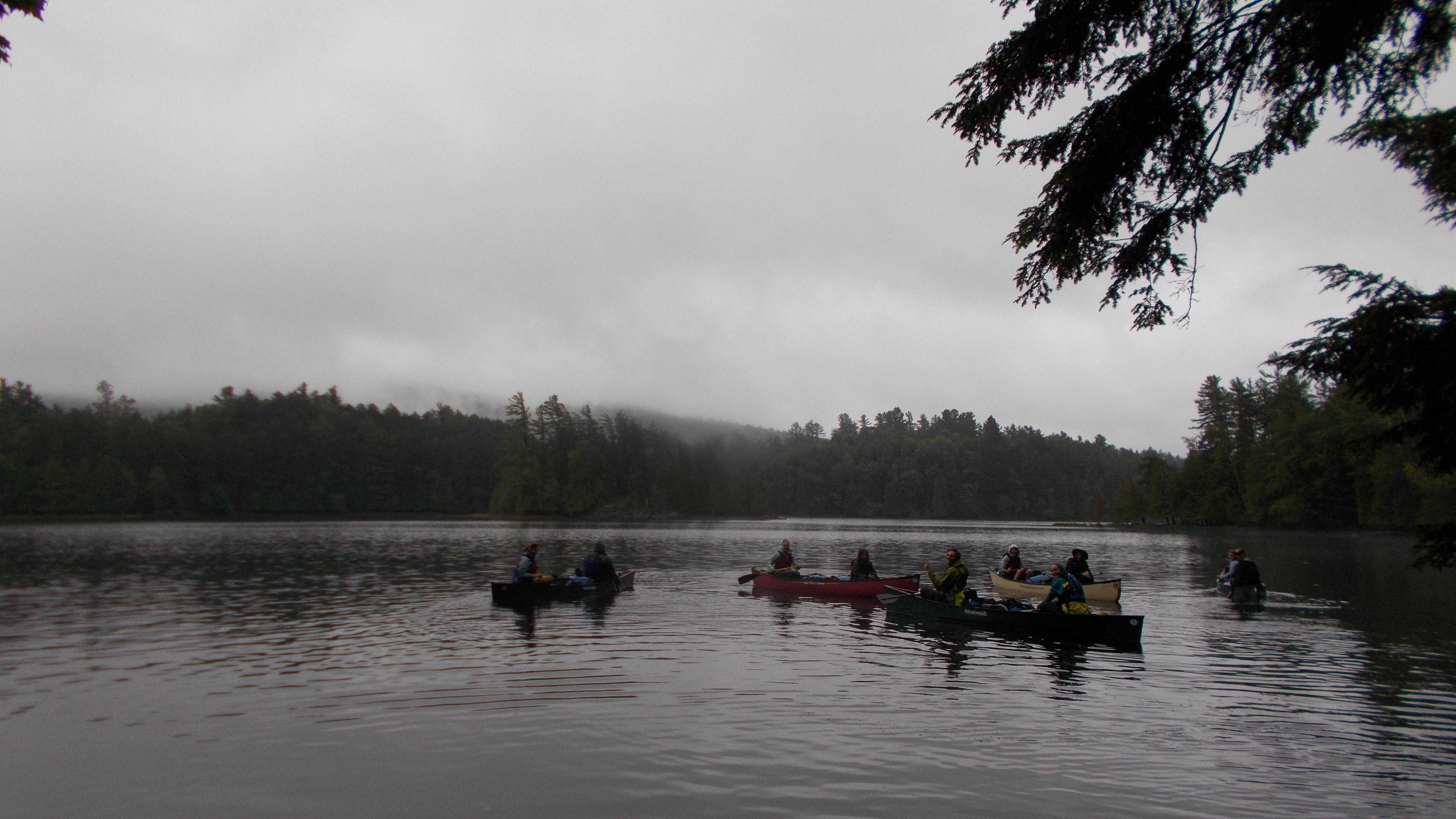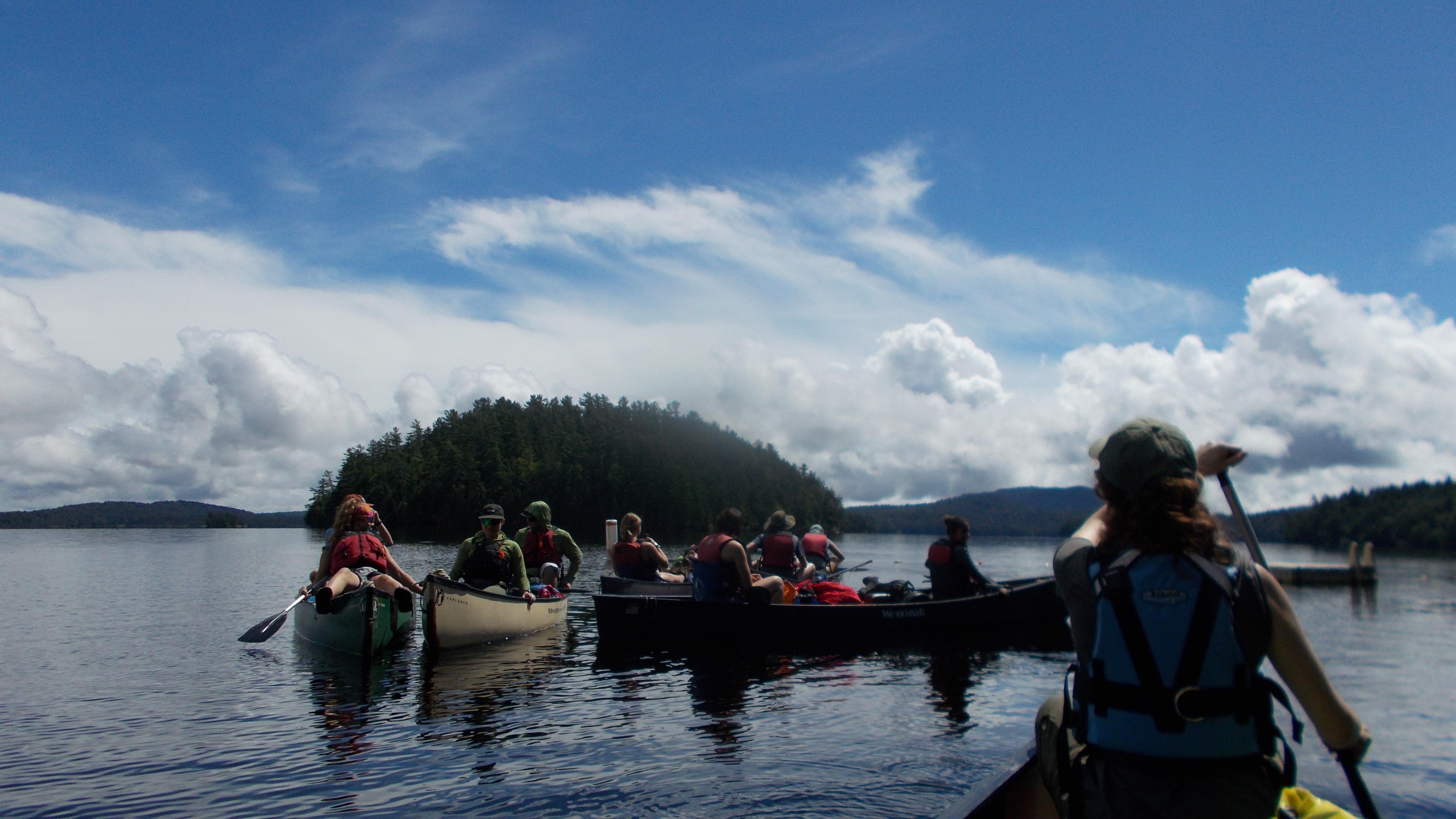Several days earlier, before all the commotion of Dead Creek, we started our semester on a sunny Sunday at Camp Canaras, where we were greeted with open arms by our instructors. In preparation for the semester ahead, we completed a Wilderness First Aid certification course and were then deemed ready for the challenges and rewards of the Adirondacks. We exploded our gear, packed our pickle barrels, donned our life jackets, and chose our perfect paddles. Two days later, the the twelve of us headed out on our canoe expedition with excitement and vigor, ready to embrace the beauty and energy that awaited us. Around lunch time, we approached a peninsula, and as hungry as we were for “pjillas” (peanut butter and jelly tortillas), we were just as hungry to jump into Saranac Lake. When we all leaped into the water, it signified the beginning of our semester to come.
