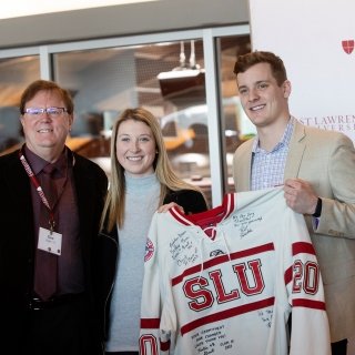 On October 26, 2024, St. Lawrence University dedicated the George W. Karpus ’68 Athletic Center at Appleton Arena. Thank you to all of the donors who made this possible for the future of St. Lawrence University and its Division III student-athletes.