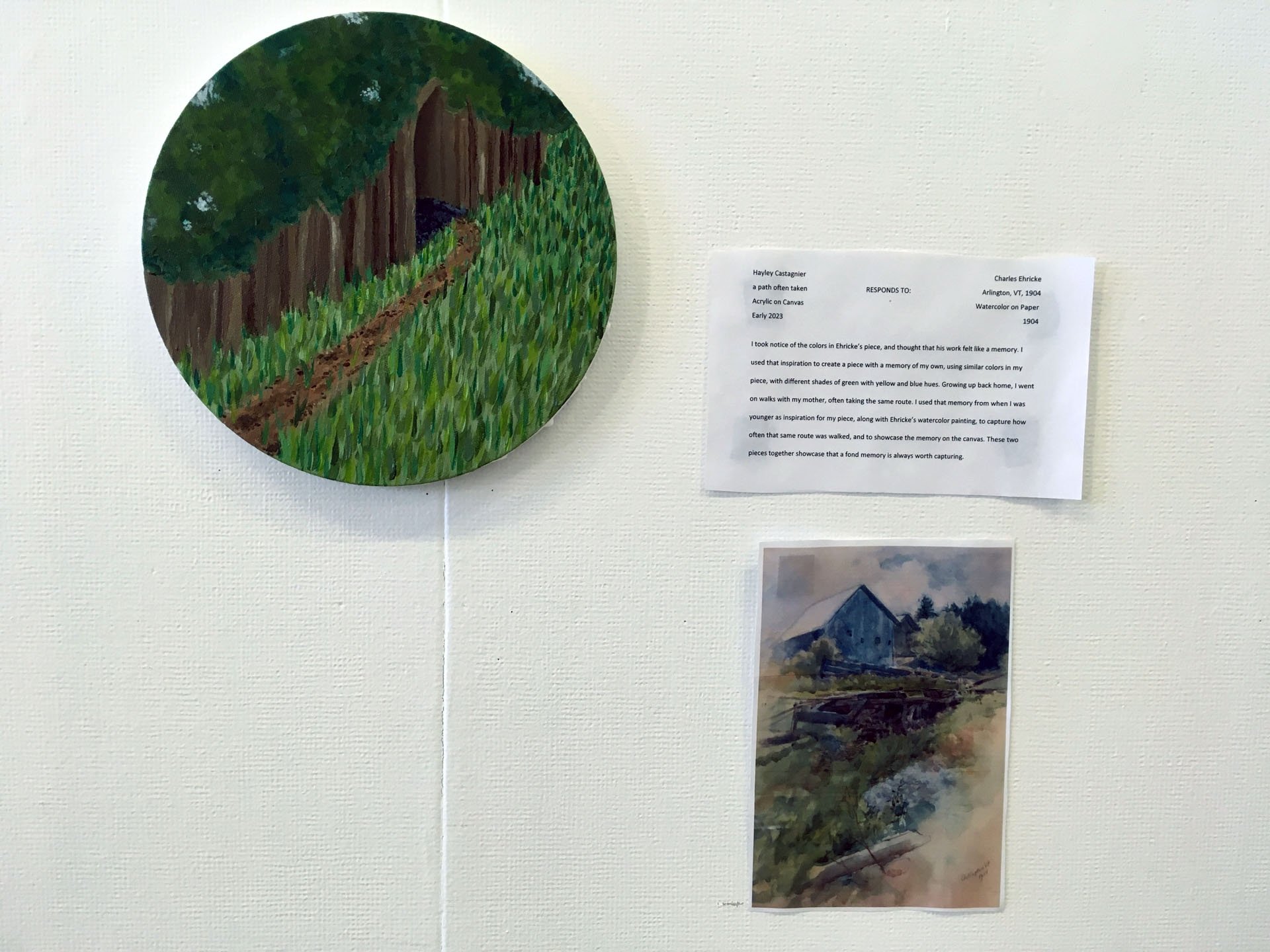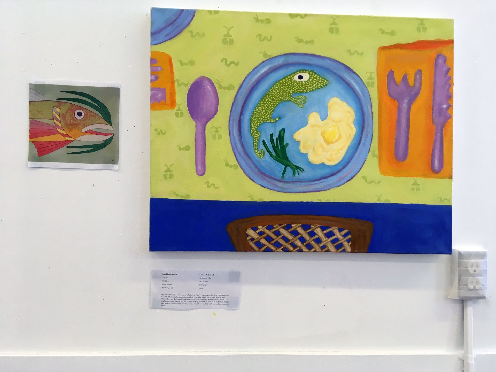 SLU Senior Majors in the senior seminar course presented a temporary pop-up exhibition on March 15, 2023 in Griffiths Hall. Called "Pit Stop" the exhibition included art work made in response to specific pieces of artwork from the permanent collection of the Richard F. Brush Art Gallery. Each student chose a piece and created their artwork to be shown at the exhibition. Following is a list of the students participating.