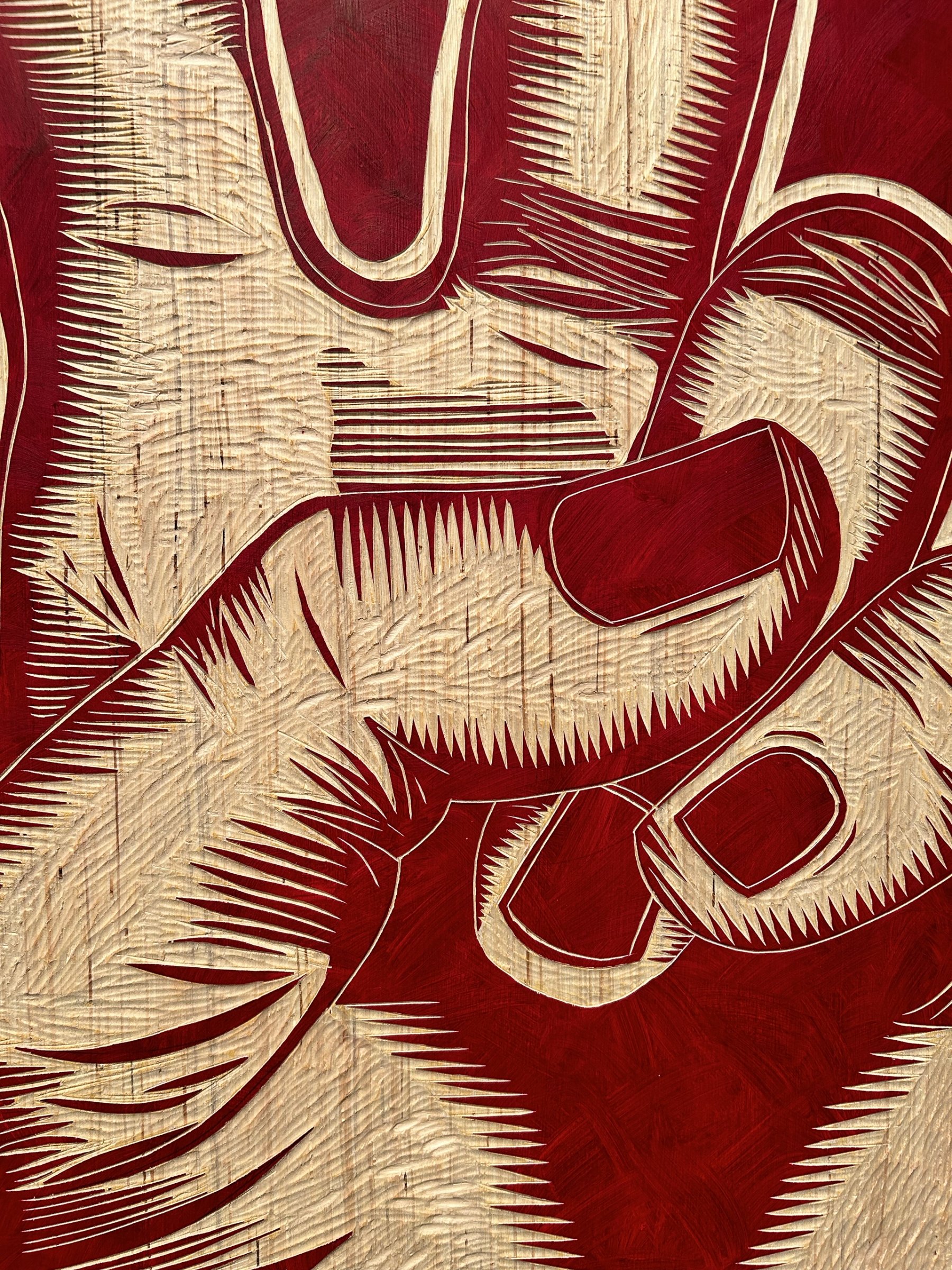 Page Image Above: Hannah Porath, Keeping Promises, 2024, oil on carved panel
