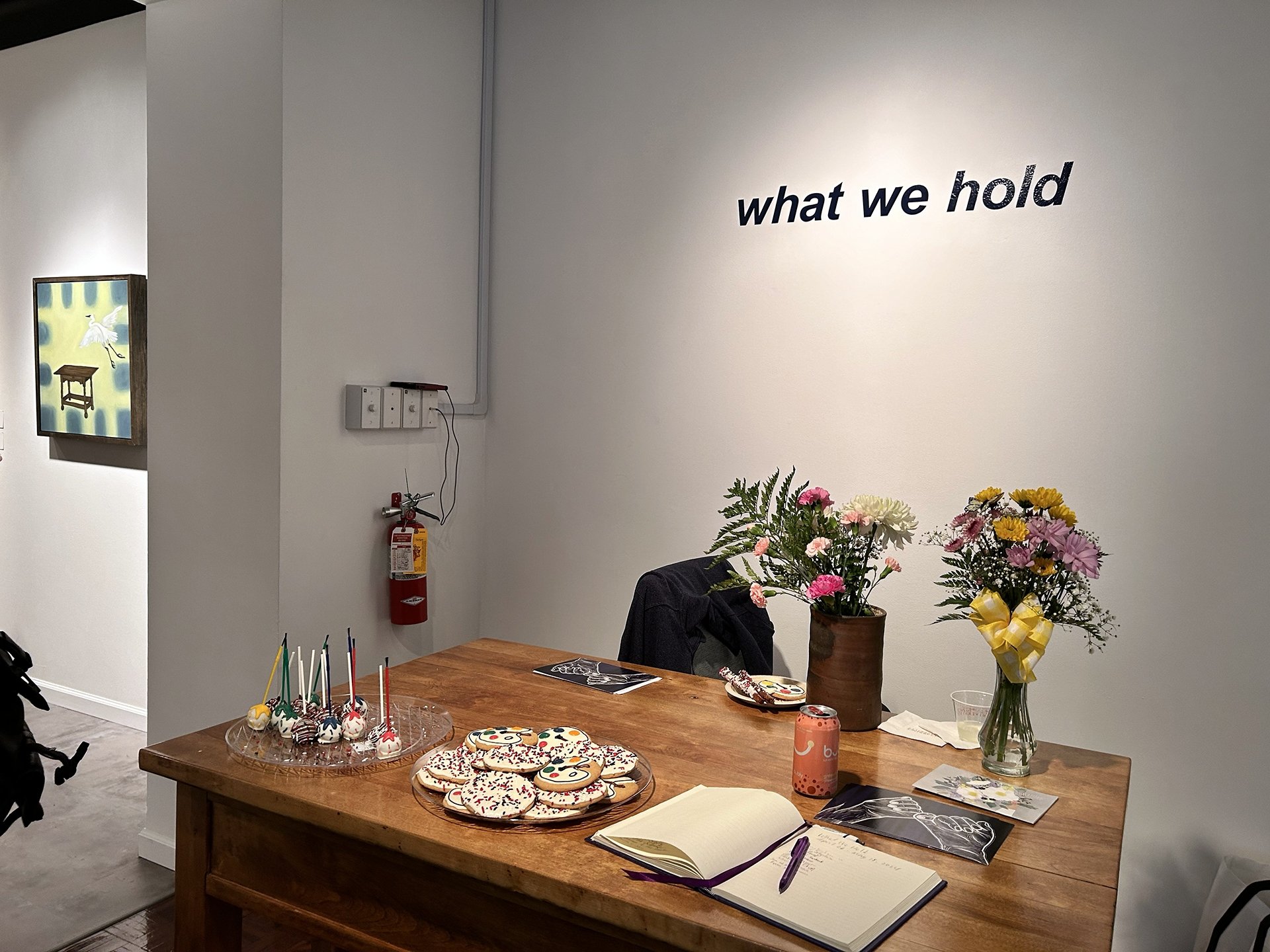 The twelve of us came together as artists, delving into our own experiences - across different media and forms of creative expression. We reflected on the things we value and found that we are more connected than we had realized. We ask viewers to consider the significance of the objects and memories they themselves hold onto, and the subsequent impact on their lives. This exhibition provides a window into personal and communal experiences and explorations of holding. This is what we hold.