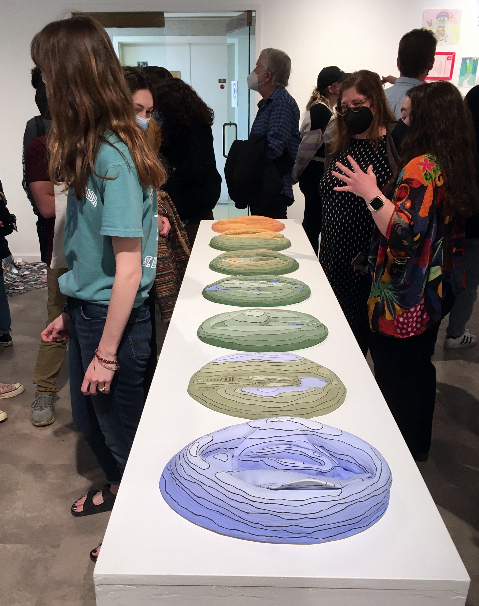 Senior Studio Art majors at SLU take a senior year experience (SYE) seminar in which the focus is on being an artist in a professional capacity following graduation. It includes experience with exhibition and gallery practices and focuses on the challenges and rewards of producing art. Mentoring for each student, artist statements, and peer critiques of work leading up to the Art Gallery Exhibition are important parts of the seminar class. There is also an informal "Pop-up" Exhibition for the class halfway through the term where work can be displayed for other class members in a kind of practice-run. The Spring 2022 class was taught by Associate Professor Sarah Knobel and Associate Professor Kasarian Dane.