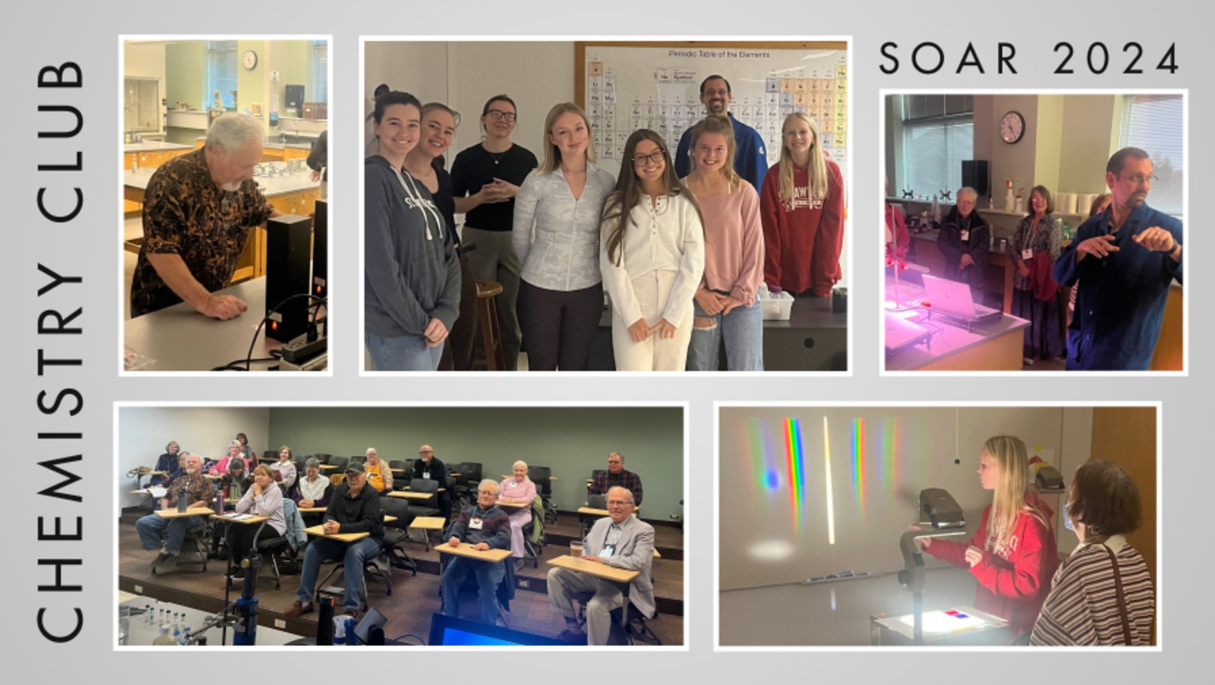 SOAR Class (Fall Semester): this is a fun opportunity to get community members engaged in chemistry and informed about the way it affects our daily lives. Each Fall, we plan and prepare a variety of chemistry demonstrations, which we present in a 90-minute class to a group of retirees through the local SOAR program. We’re never sure who has a better time…the students presenting or the students attending the classes!
