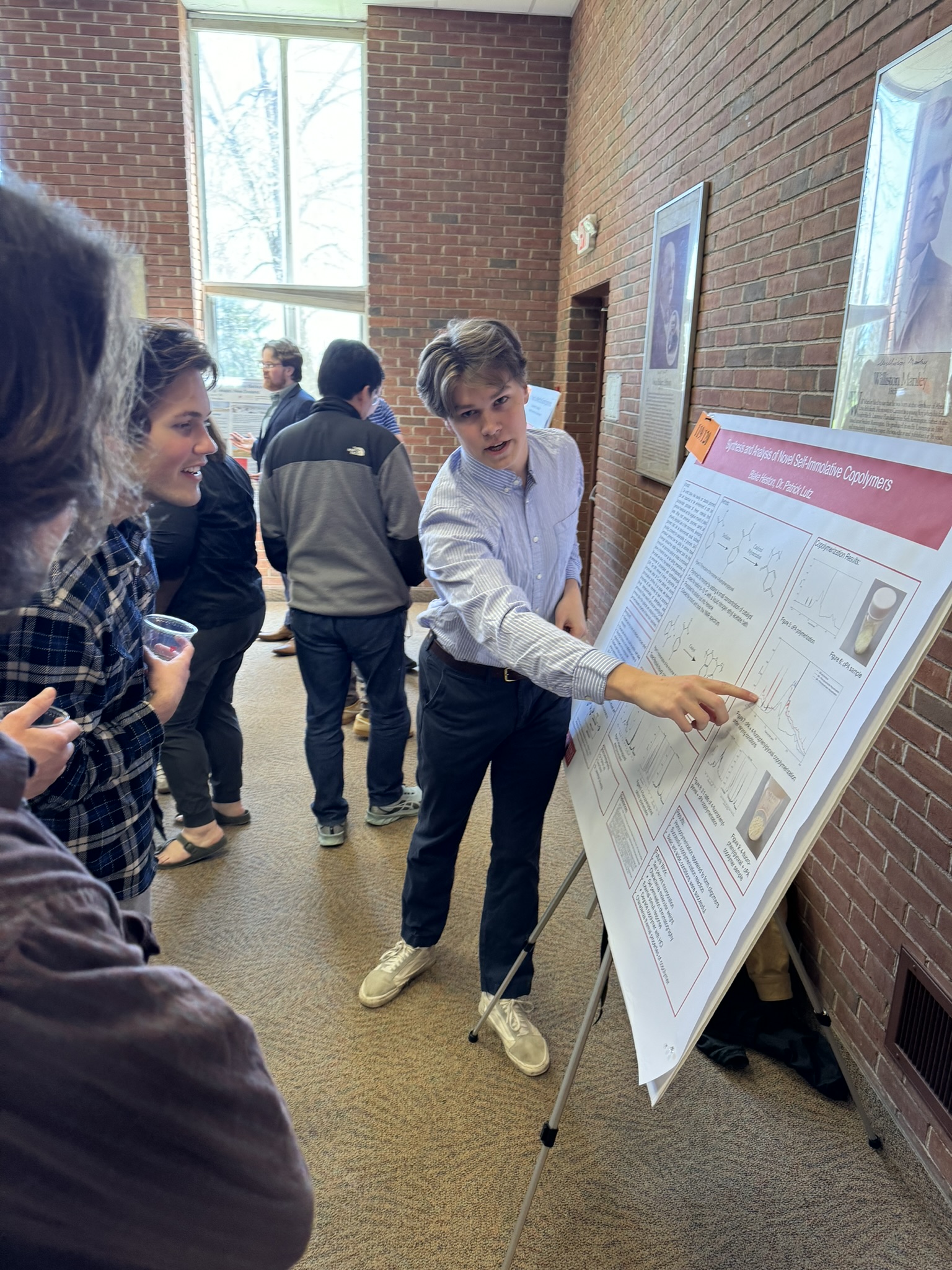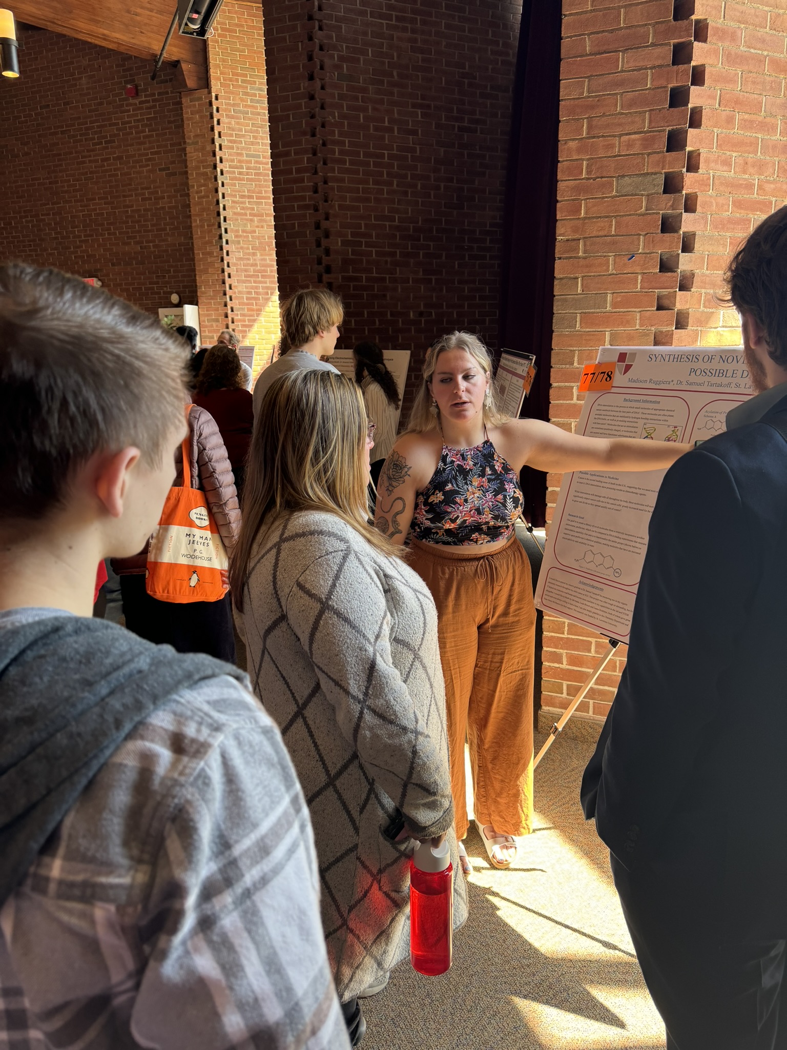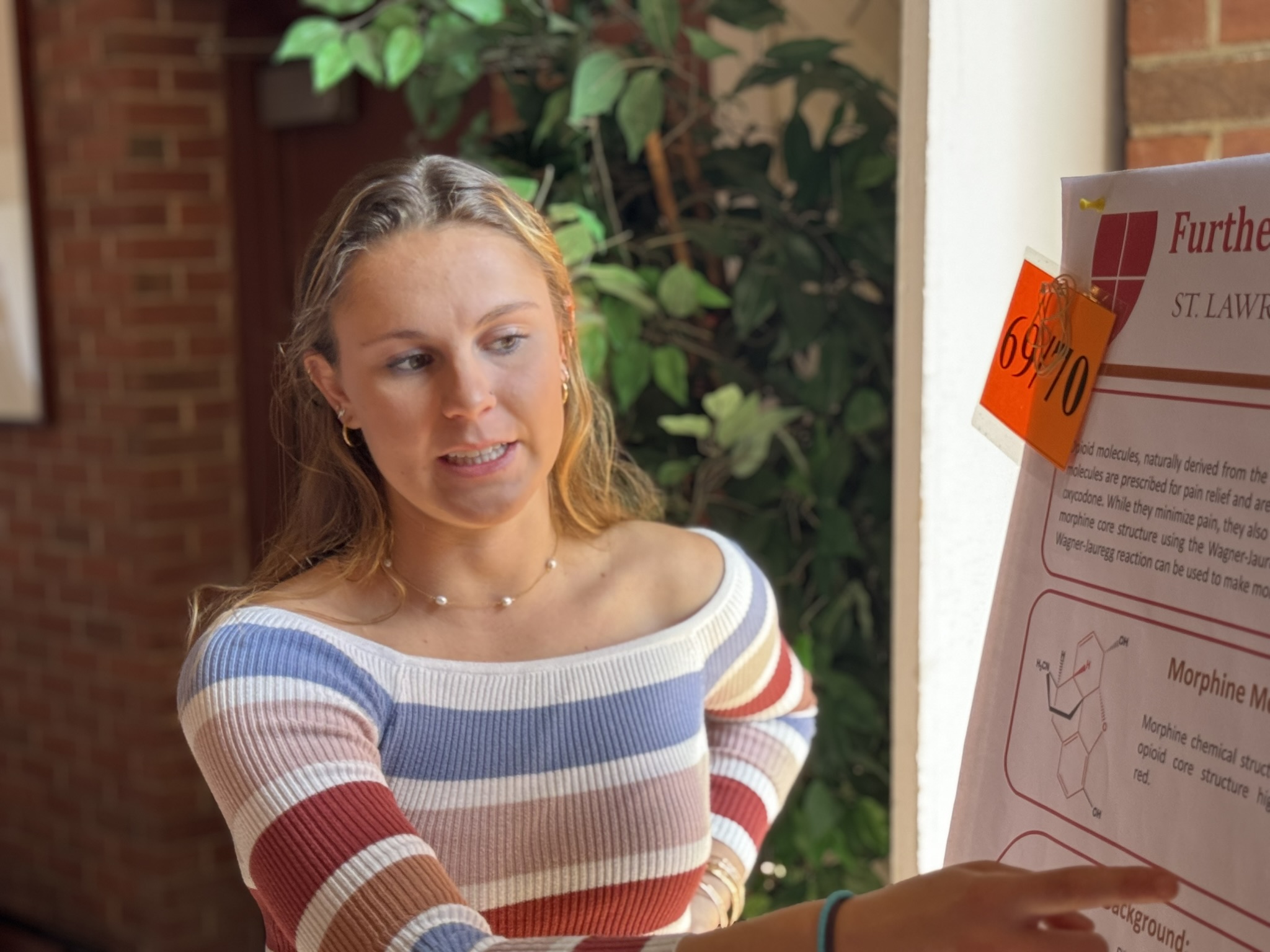 At St. Lawrence University Festival of Science, Scholarship and Creativity on April 26, 2024, Chemistry students doing research in the Chemistry Department presented their results.