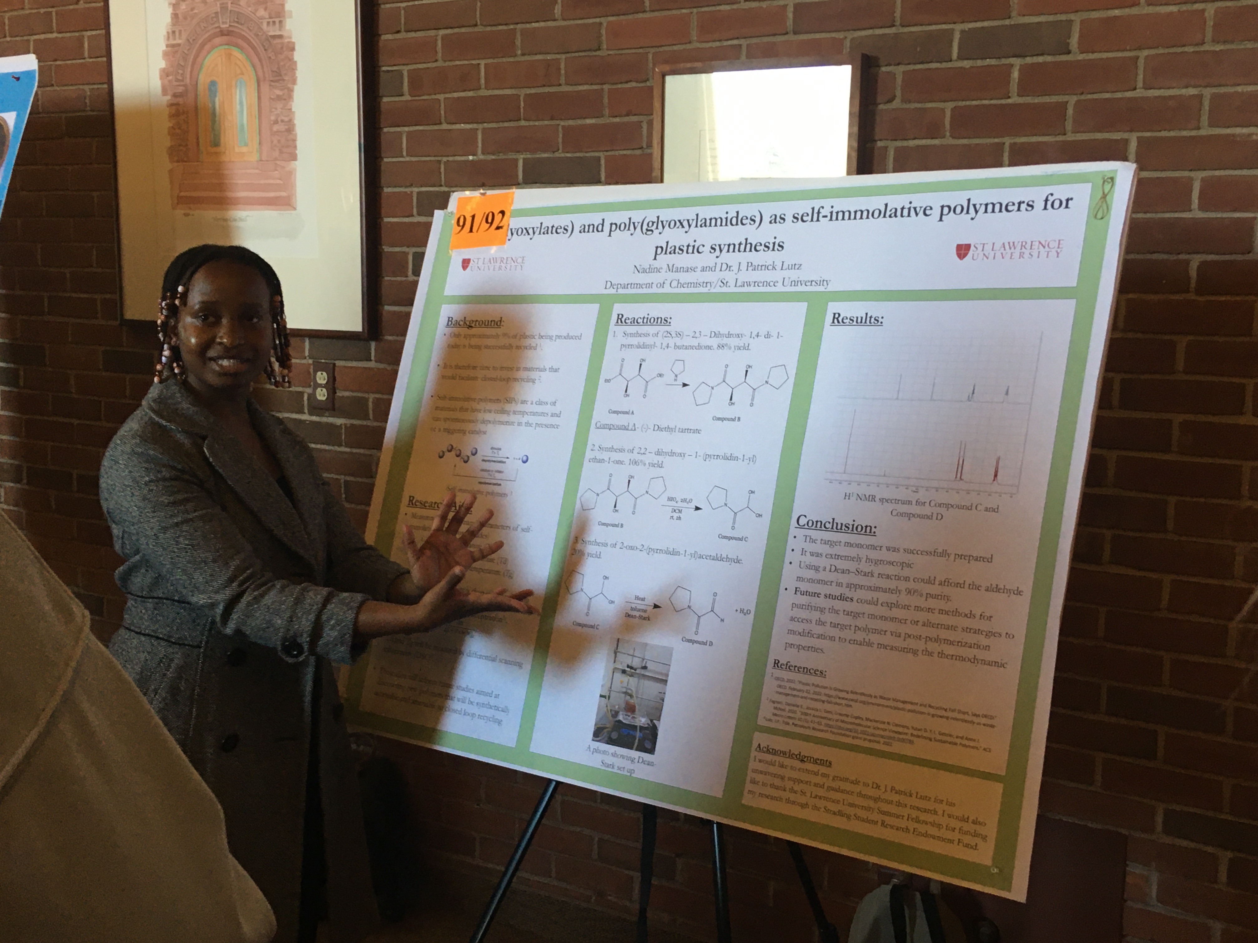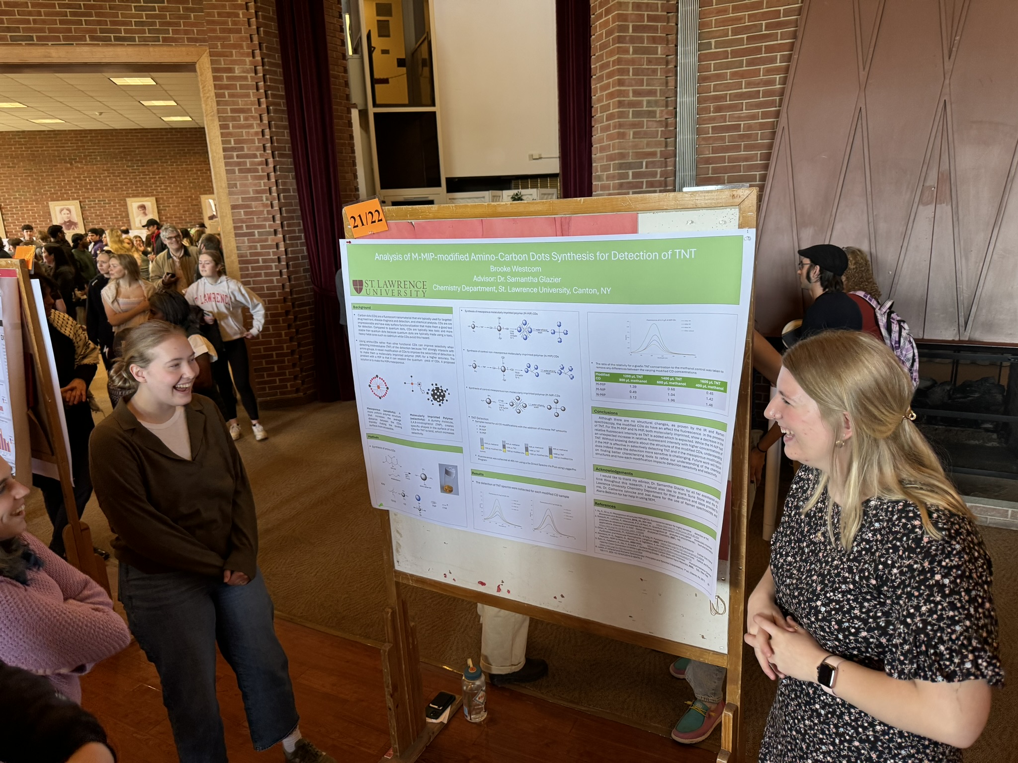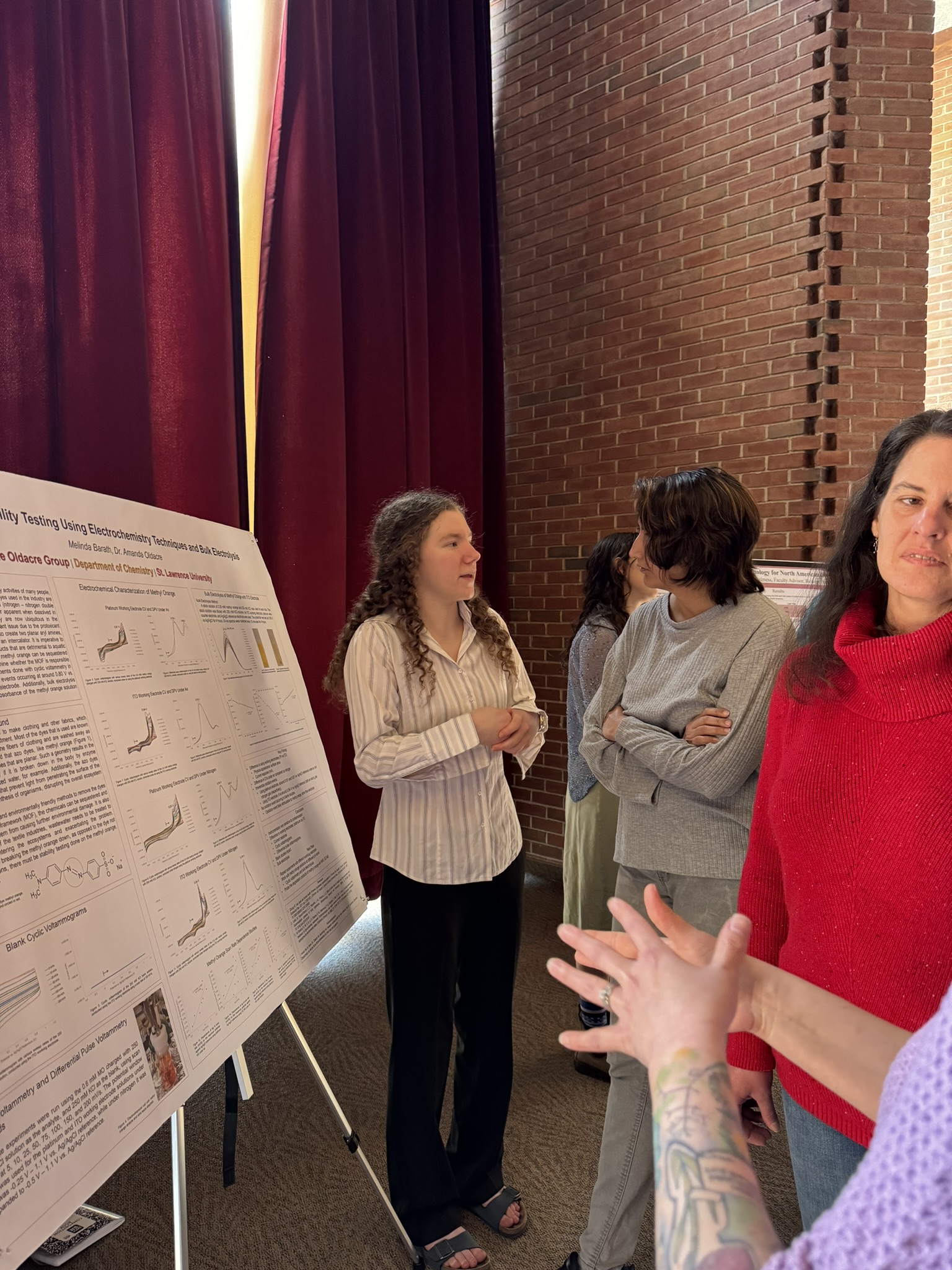 At St. Lawrence University Festival of Science, Scholarship and Creativity on April 26, 2024, Chemistry students doing research in the Chemistry Department presented their results.