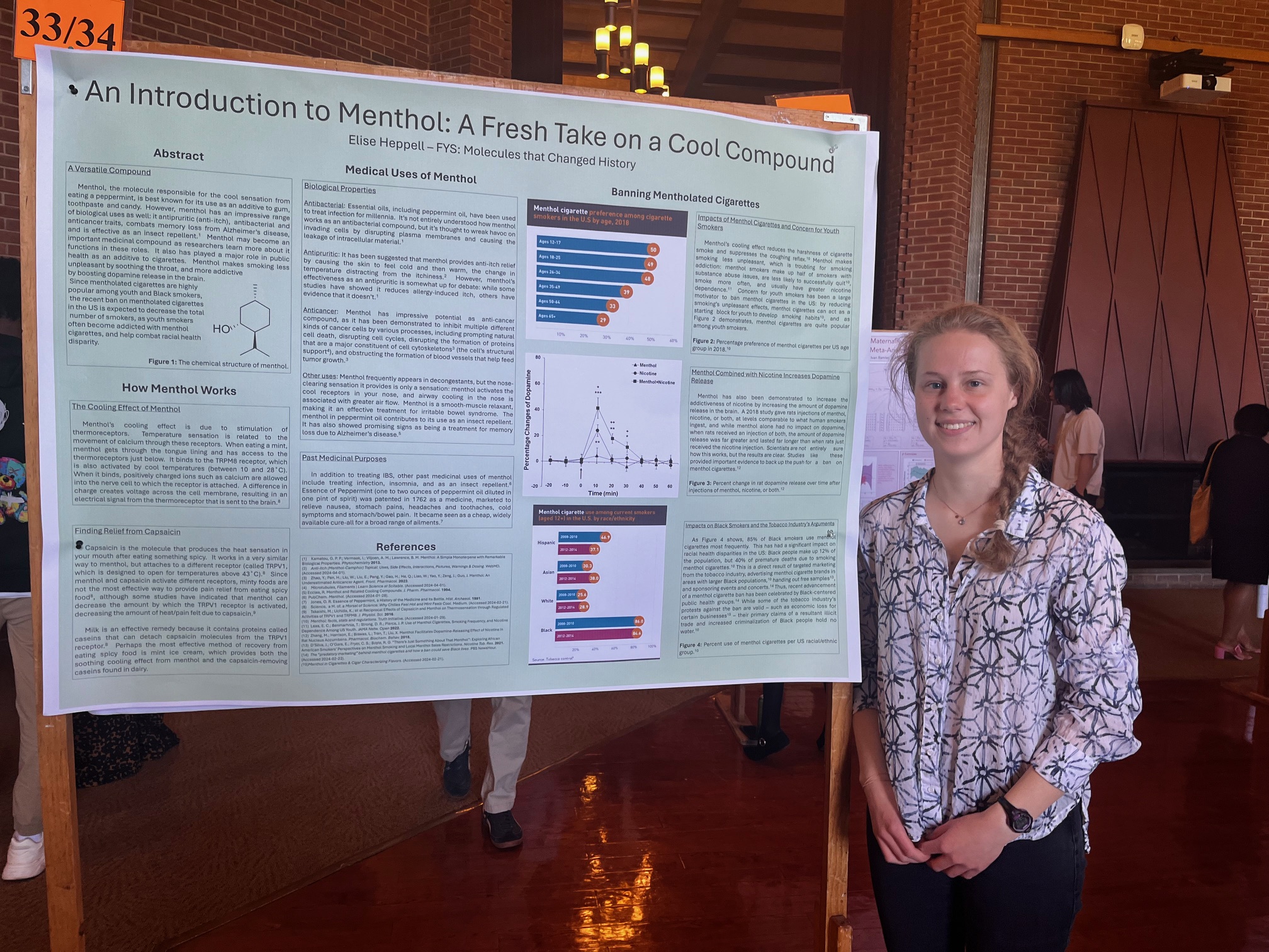 Abstract: Menthol, the molecule responsible for the cool sensation from eating a peppermint, is best known for its use as an additive to gum, toothpaste and candy. However, menthol has an impressive range of biological uses as well: it has anticancer, antibacterial and anti-itch properties, combats memory loss from Alzheimer’s disease, and is effective as an insect repellent. Menthol may become an important medicinal compound as researchers learn more about how it functions in these roles. It also has played a major role in public health as an additive to cigarettes. Menthol makes smoking less unpleasant by soothing the throat, and more addictive by boosting dopamine release in the brain. Since mentholated cigarettes are highly popular among youth smokers and Black smokers, the recent ban on mentholated cigarettes in the United States is expected to decrease the total number of smokers, as youth smokers often become addicted with menthol cigarettes, and help combat racial public health disparity.
