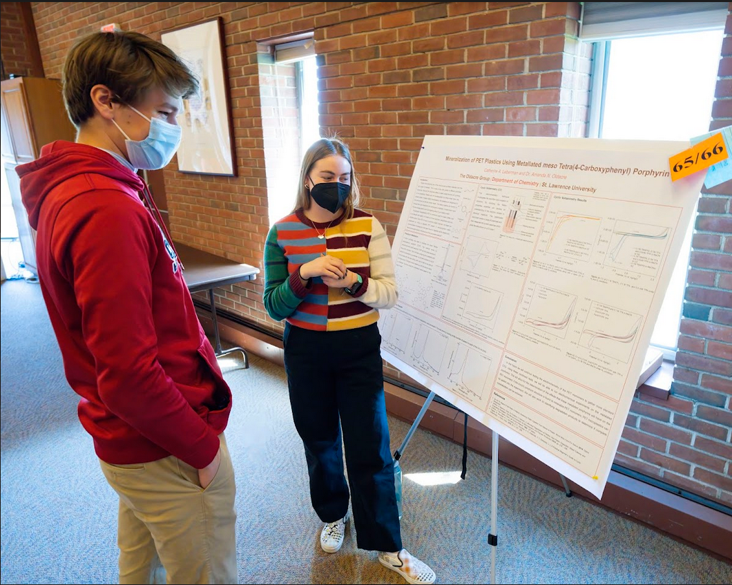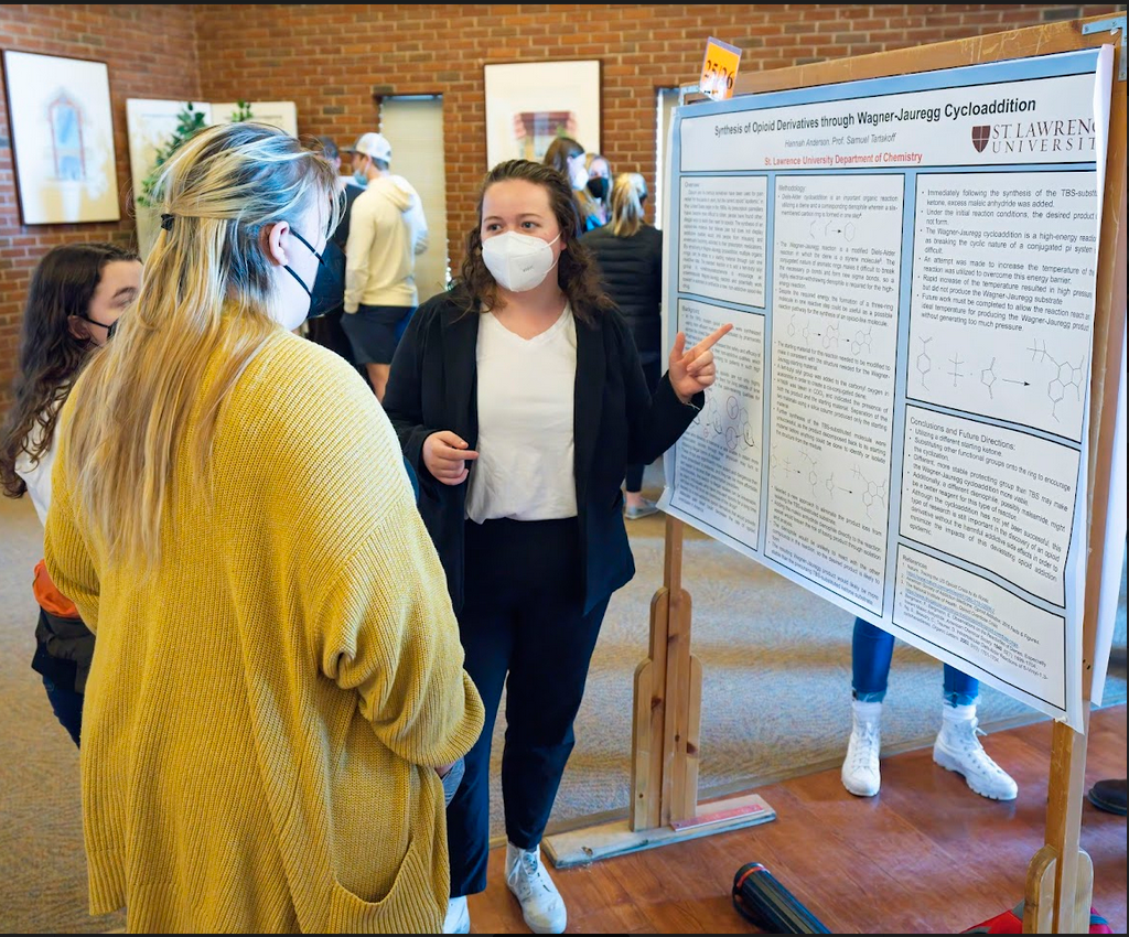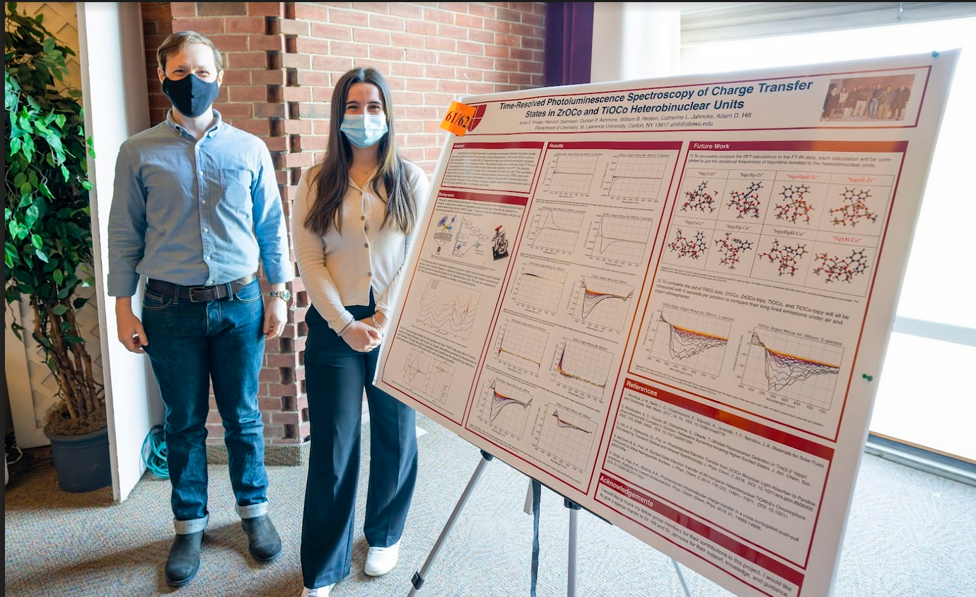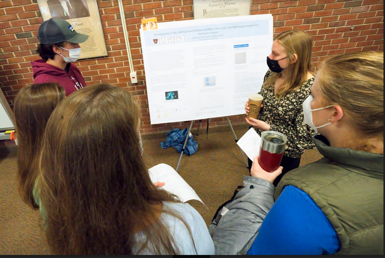 At St. Lawrence’s Festival of Science, Scholarship, and Creativity on April 29, 2022, Chemistry majors and first-year students doing research in the Chemistry Department presented their results.