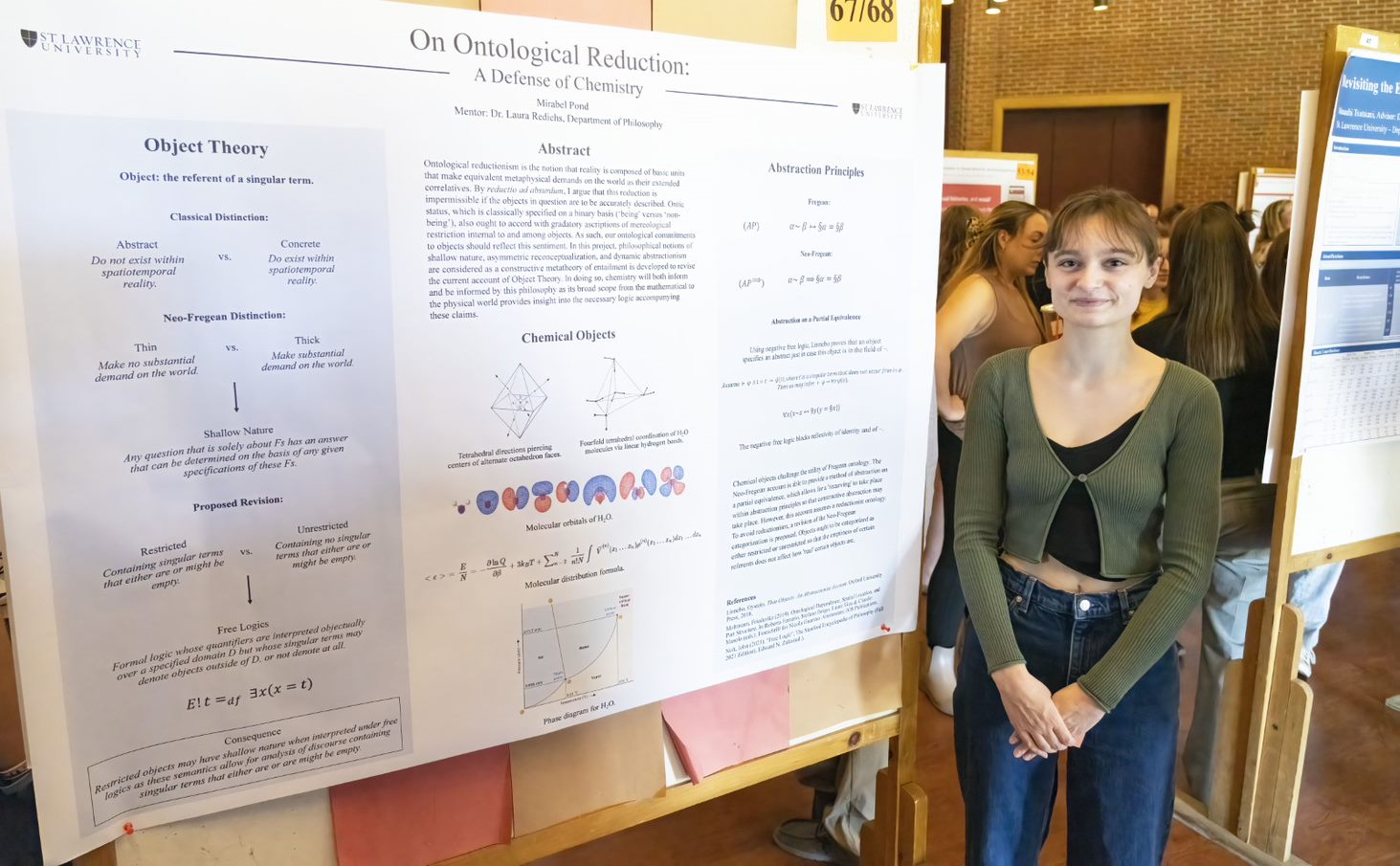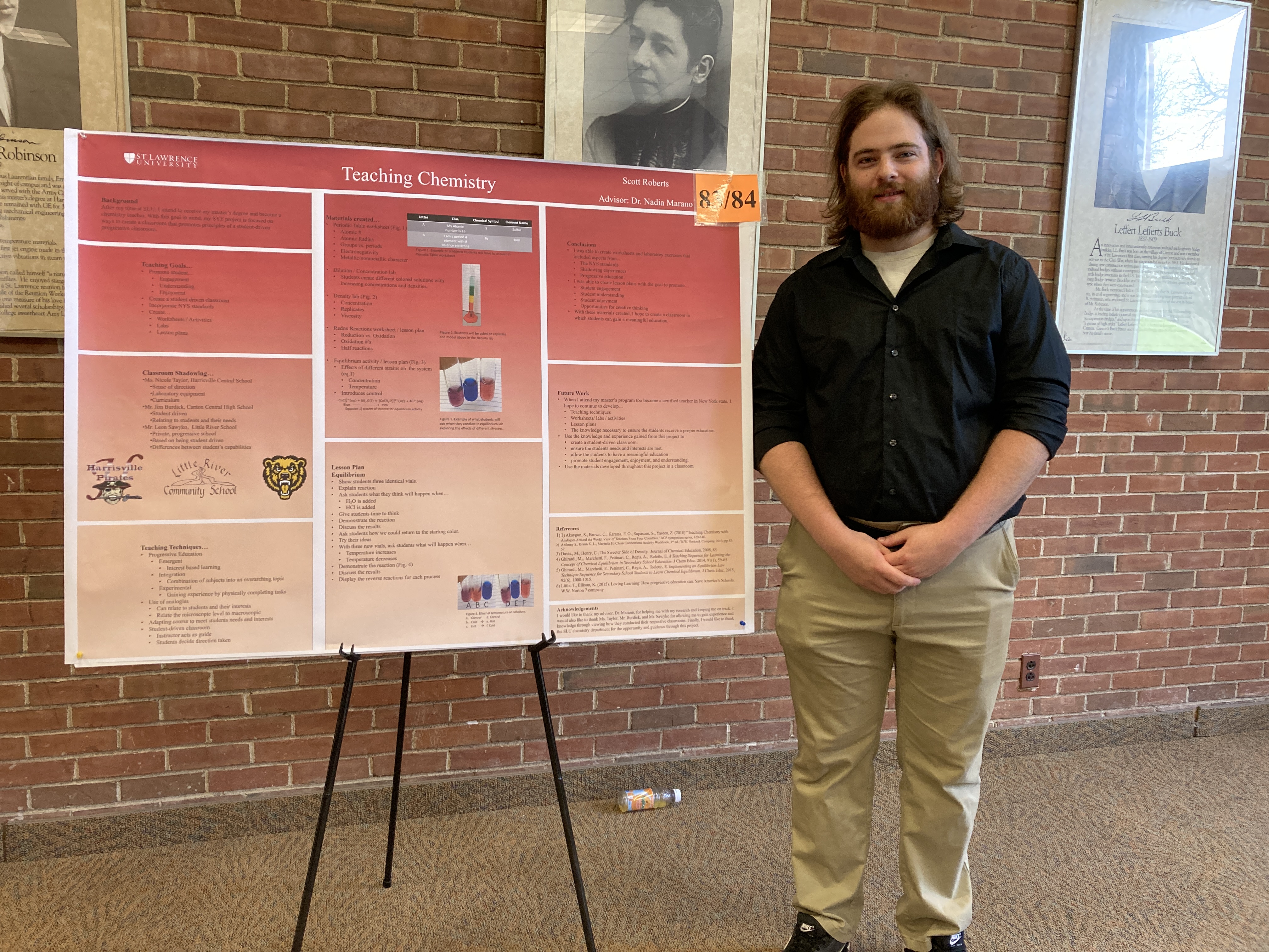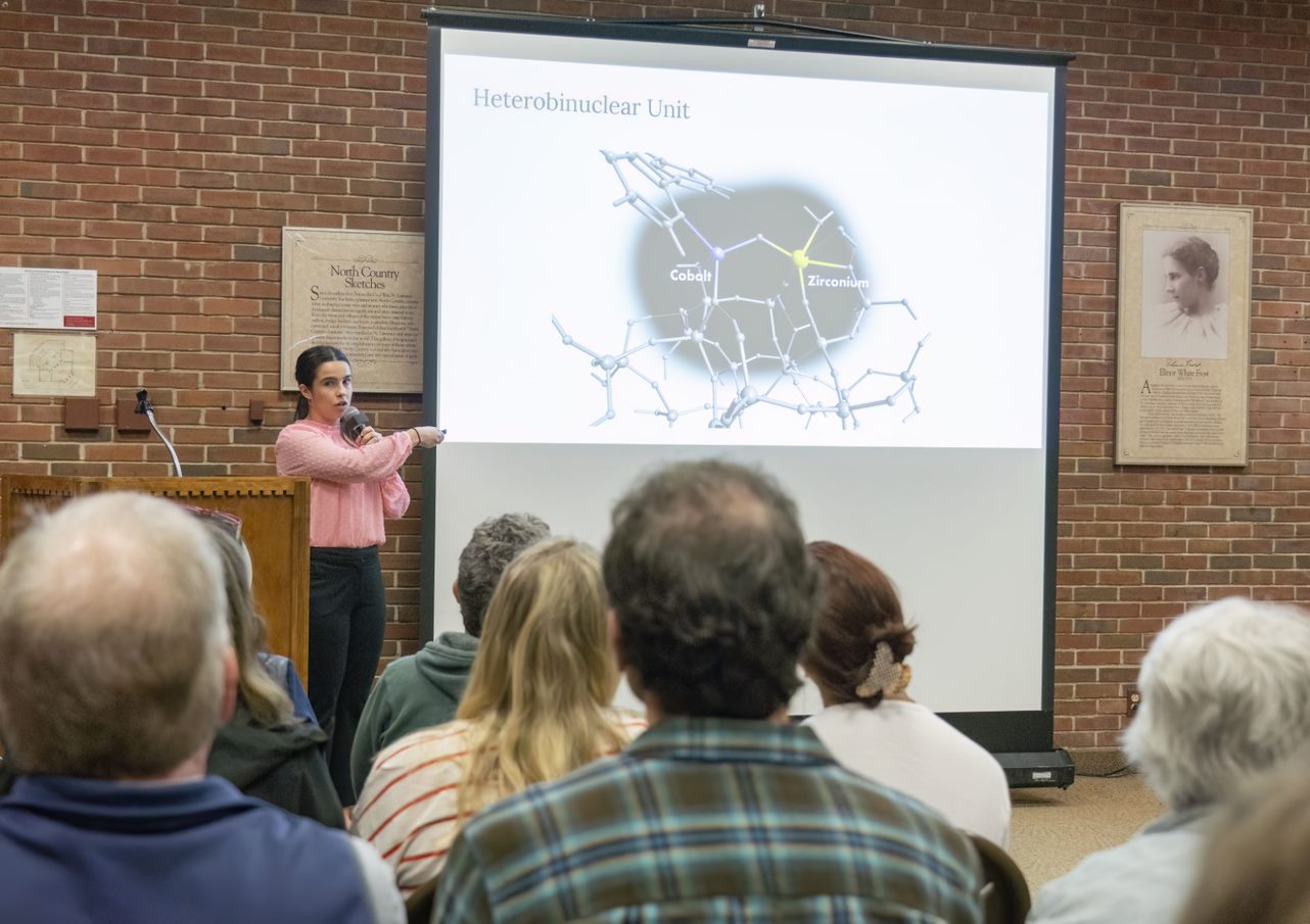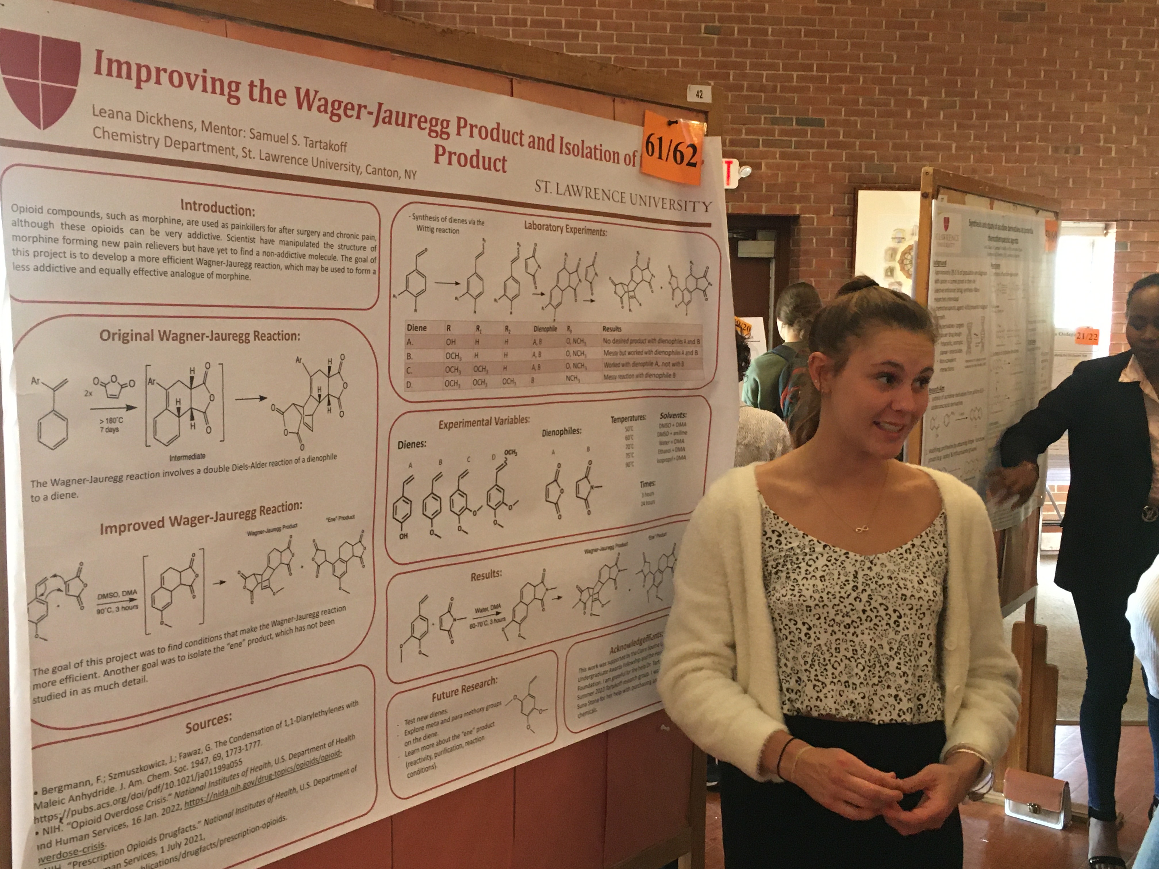 At St. Lawrence University Festival of Science, Scholarship and Creativity on April 28, 2023, Chemistry students doing research in the Chemistry Department presented their results.