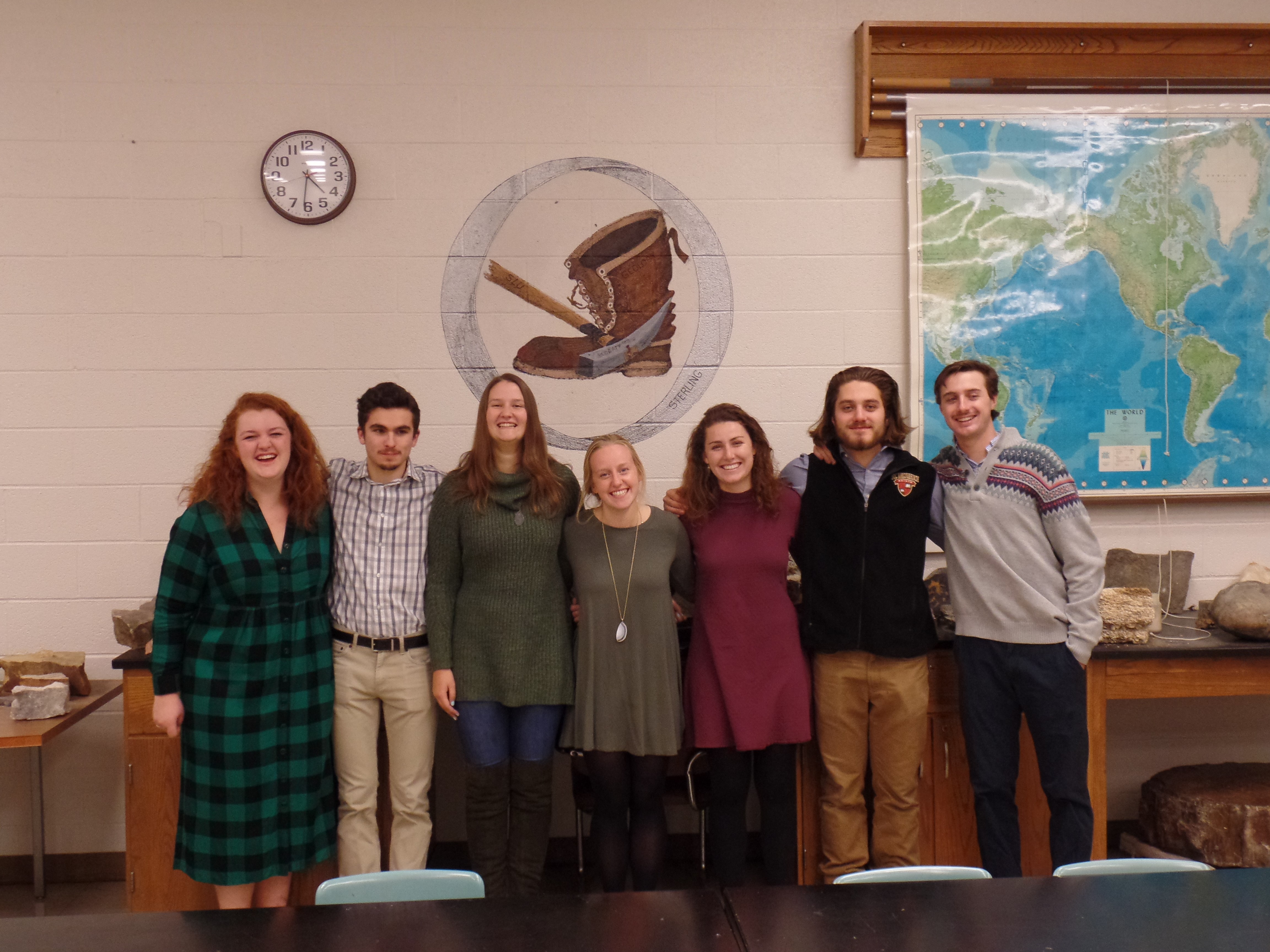 The Earth Sciences Honorary Society, Sigma Gamma Epsilon, Eta Xi Chapter, inducted seven new initiates: Elyssa Connolly '20, Cory Couture '20, Deryn Makowski '20, Zoe Soule '19, Alaina Ring '19, Kyle Gorman '20, and Liam Blake '19
