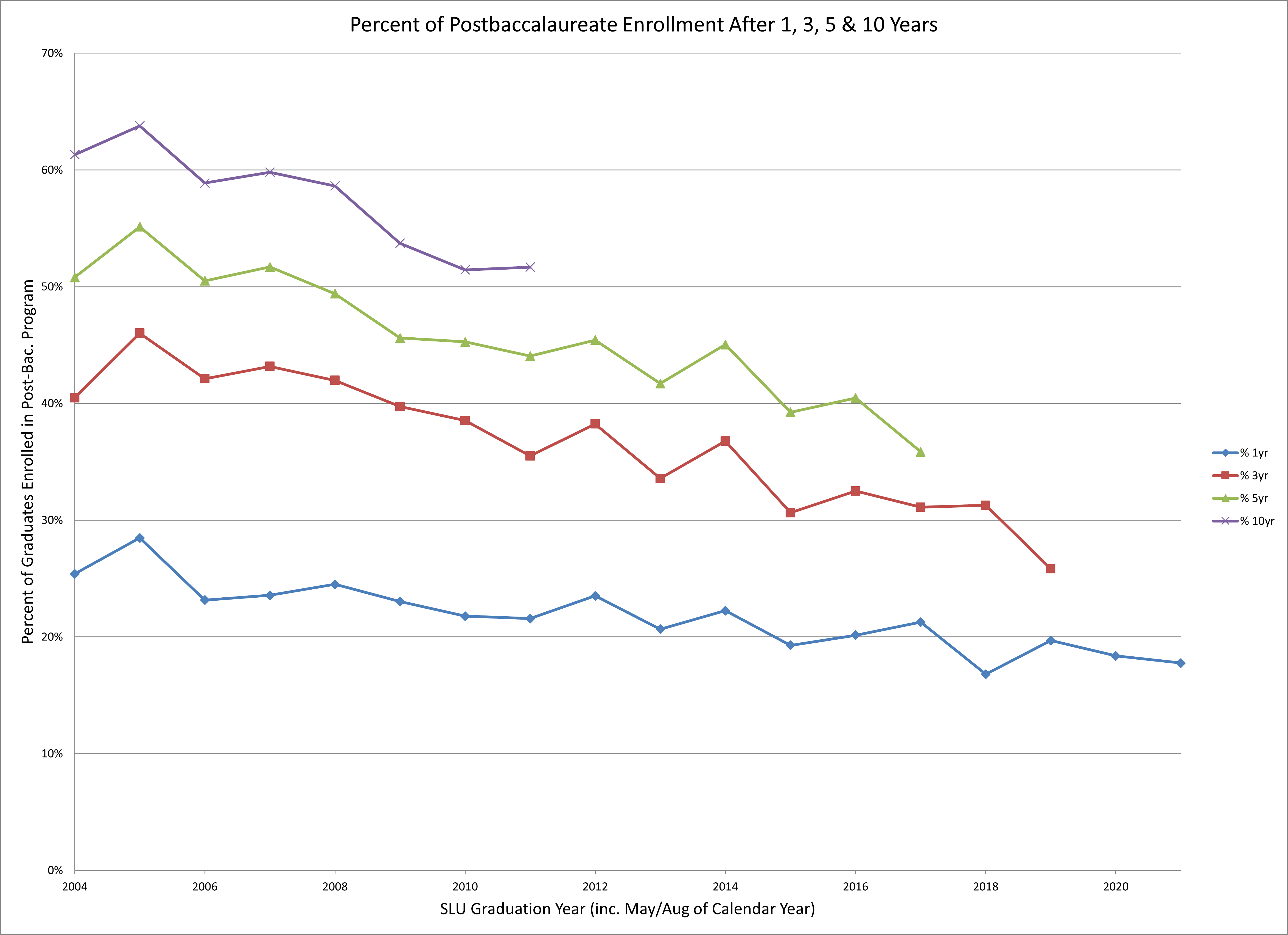 If a student attended more than one school after graduating from St. Lawrence, each school gets counted once. Based on National Student Clearinghouse data for class years of 2008-2012.
