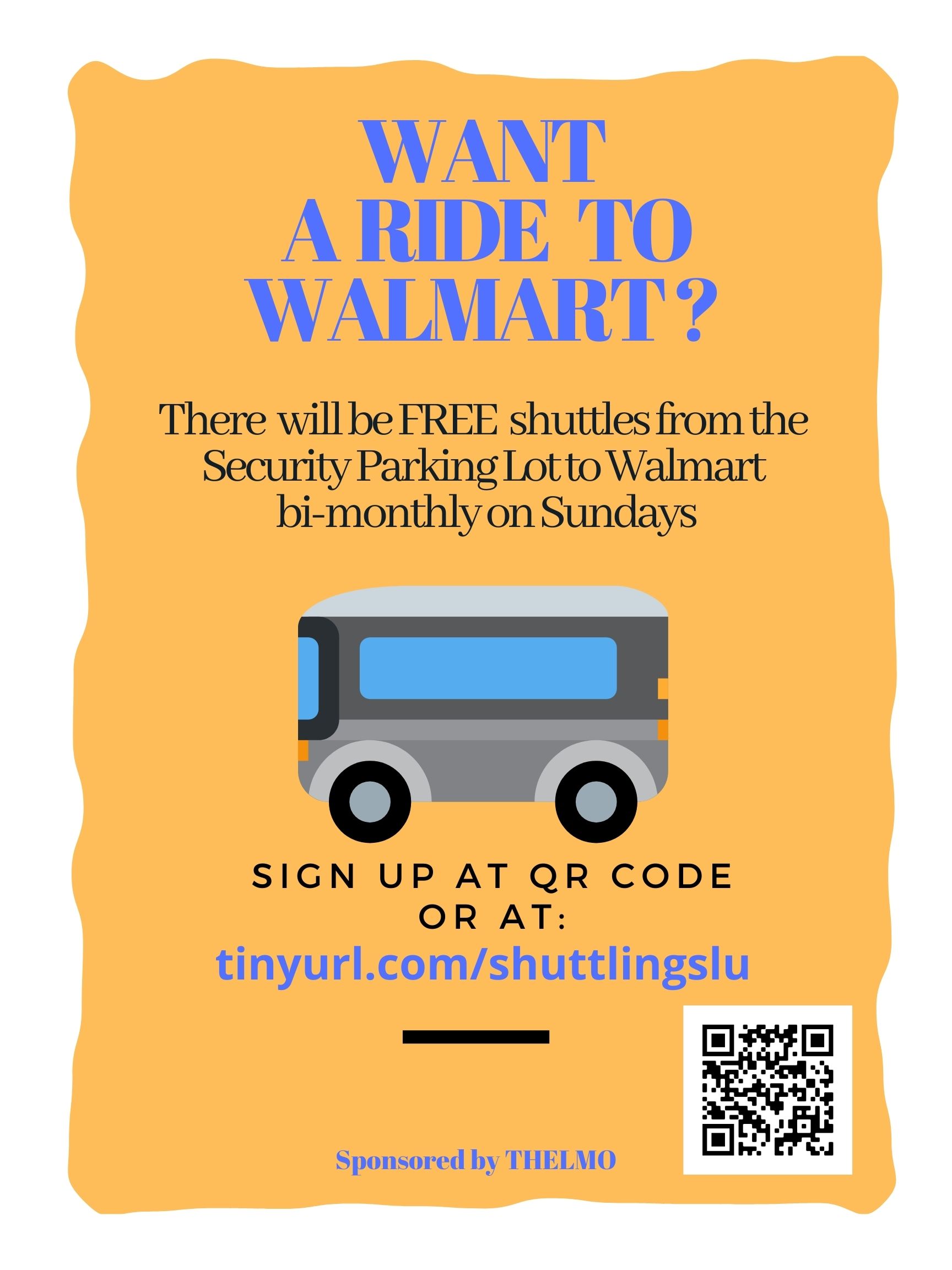 THELMO sponsors free shuttles to Walmart every-other Sunday throughout the academic year. SIGNUP REQUIRED
