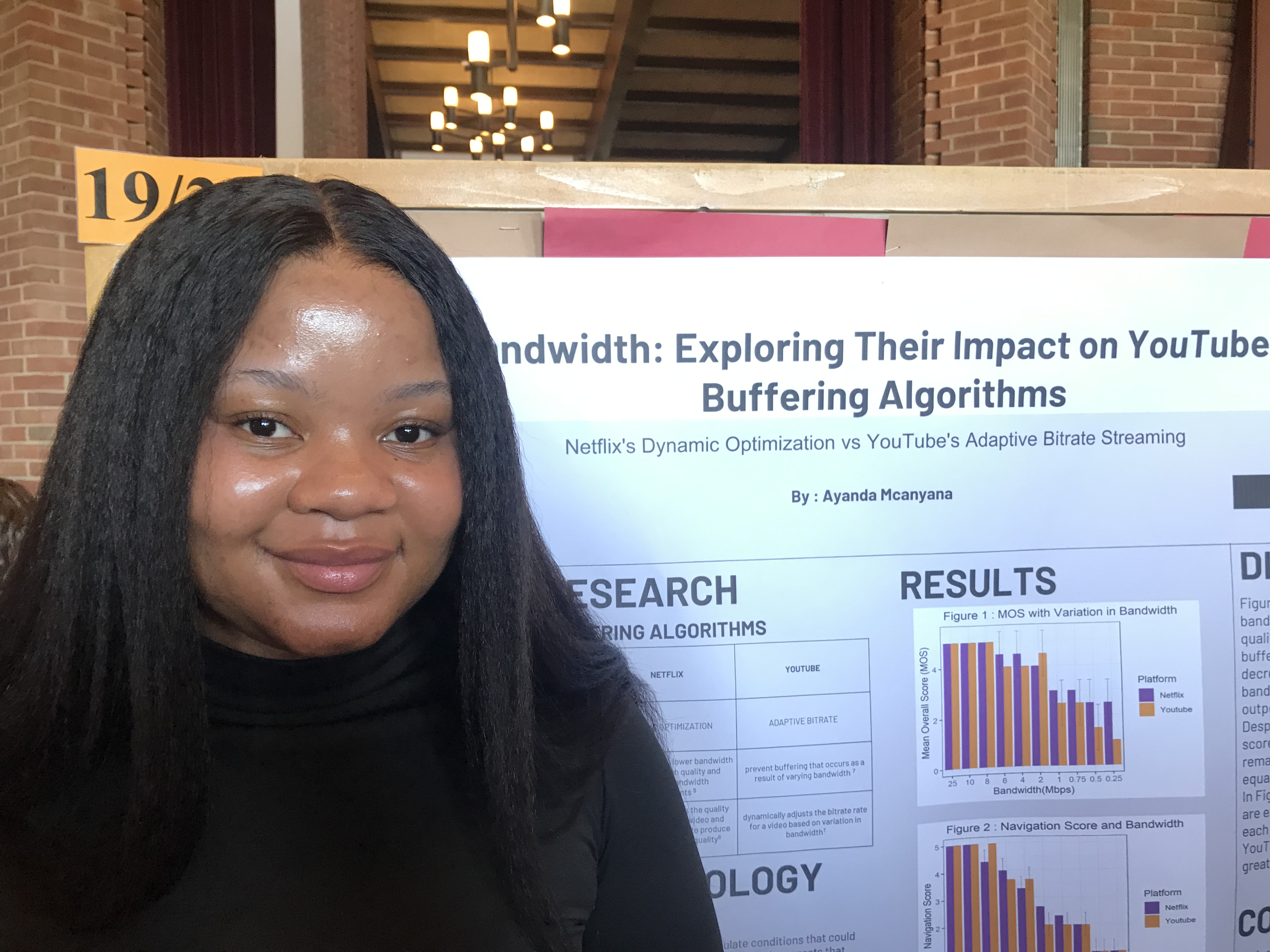 Presenter: Ayanda Mcanyana, Faculty Sponsor: Choong-Soo Lee, Department: Computer Science, Title: “Jitter and Bandwidth: Exploring Their Impact on YouTube and Netflix Buffering Algorithms”