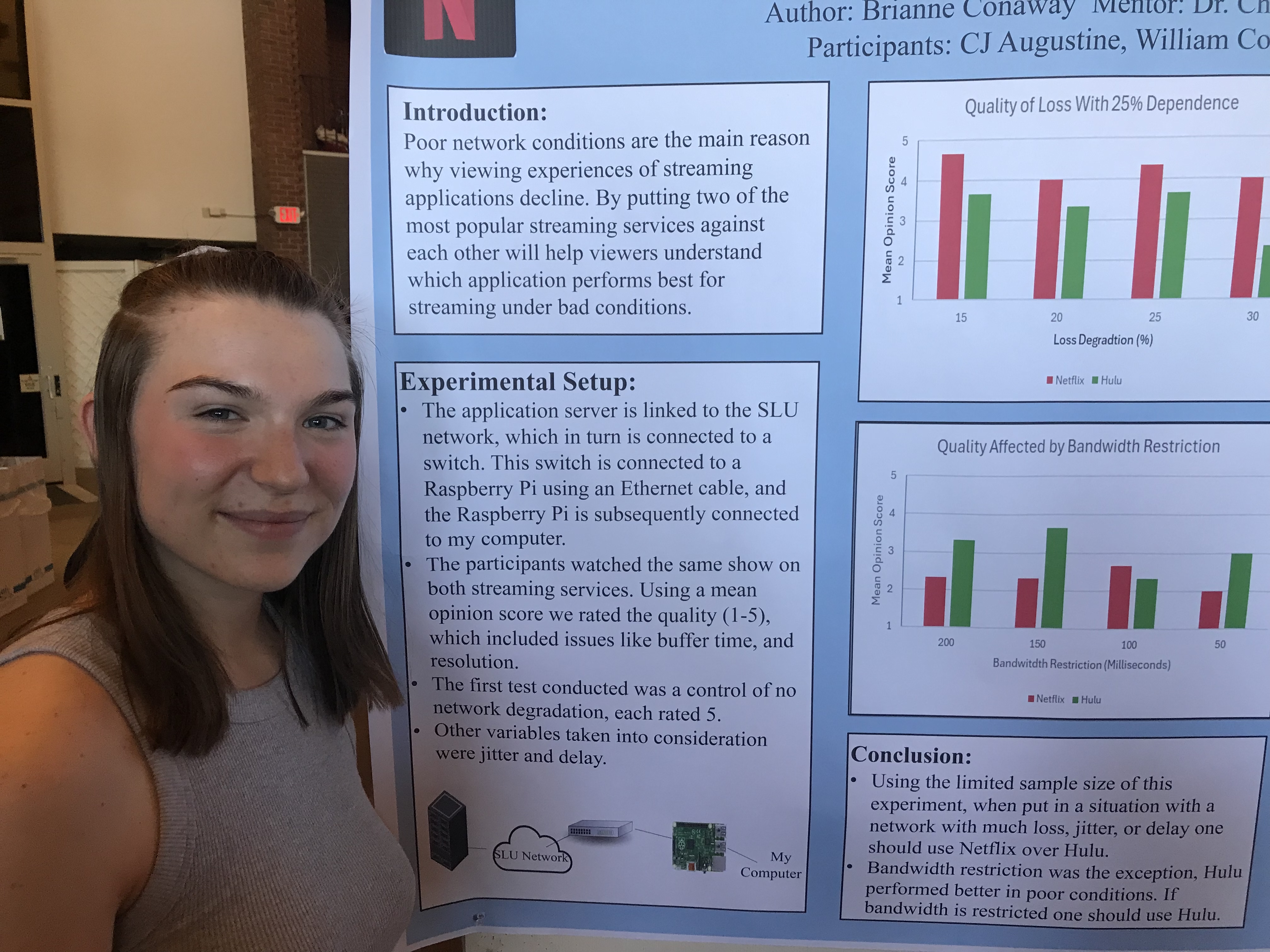 Presenter: Brianne Conaway, Faculty Sponsor: Choong-Soo Lee, Department: Computer Science, Title: “ Netflix vs. Hulu Network Degradation”