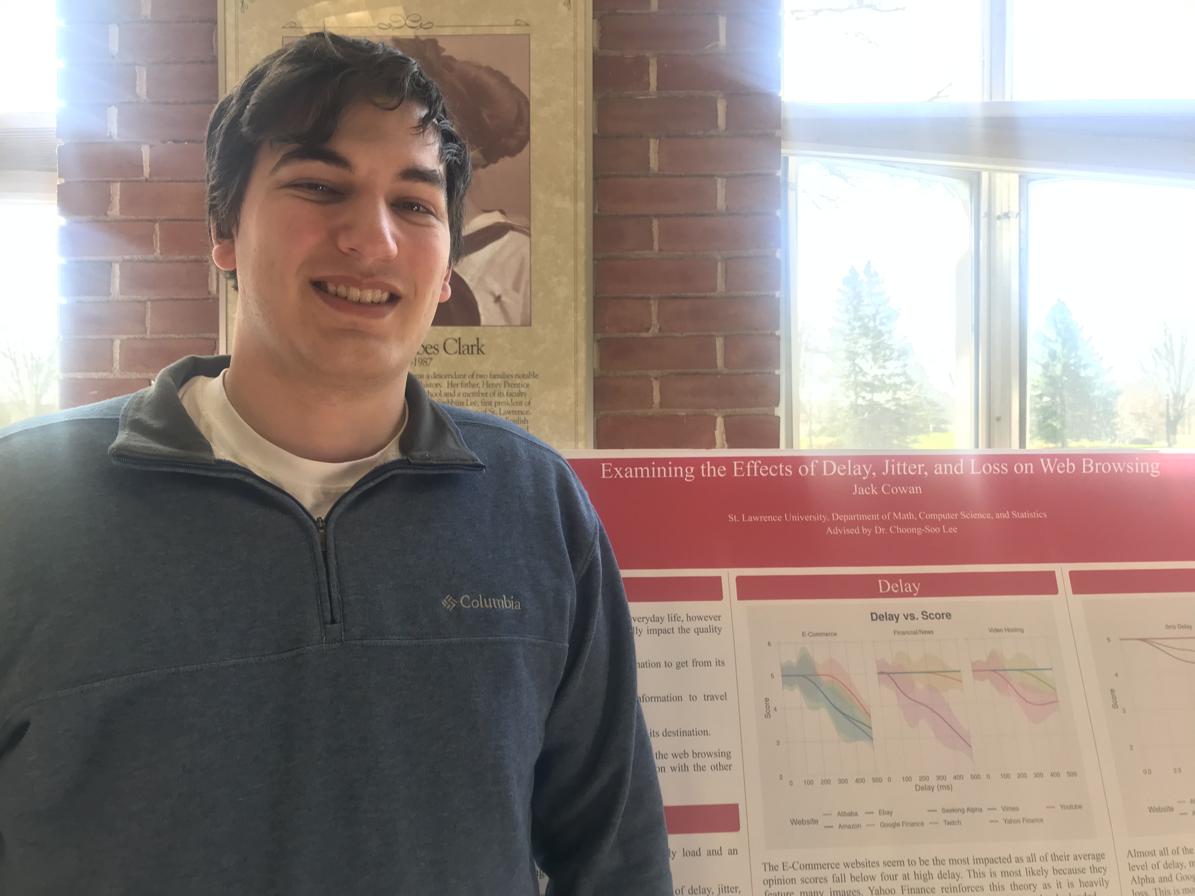 Presenter: Jack Cowan, Faculty Sponsor: Choong-Soo Lee, Department: Computer Science, Title: “ Examining the Effects of Delay, Jitter, and Loss on Web Browsing”