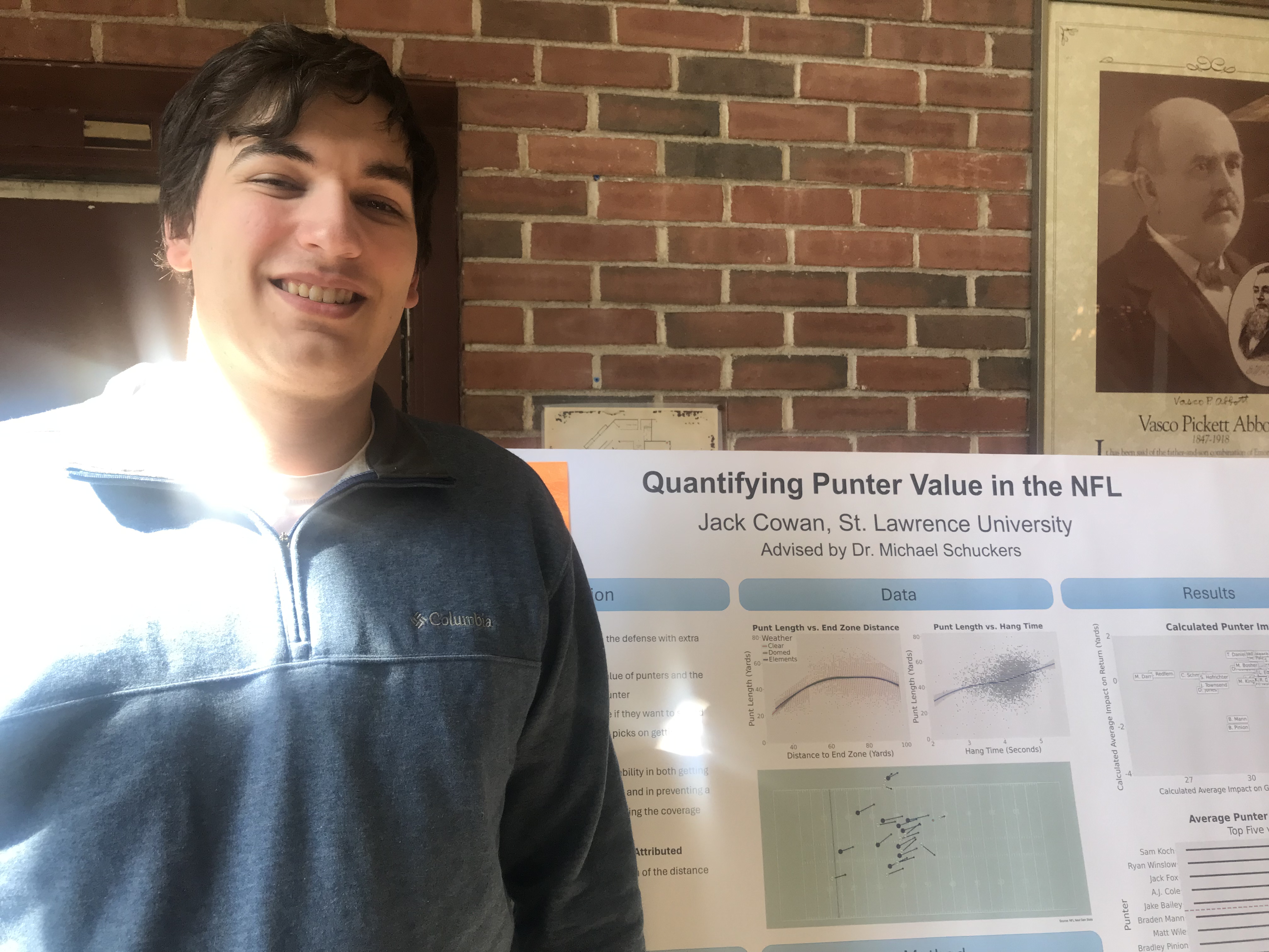 Presenter: Jack Cowan, Faculty Sponsor: Michael Schuckers, Department: Statistics, Title: “Quantifying Punter Value in the NFL”