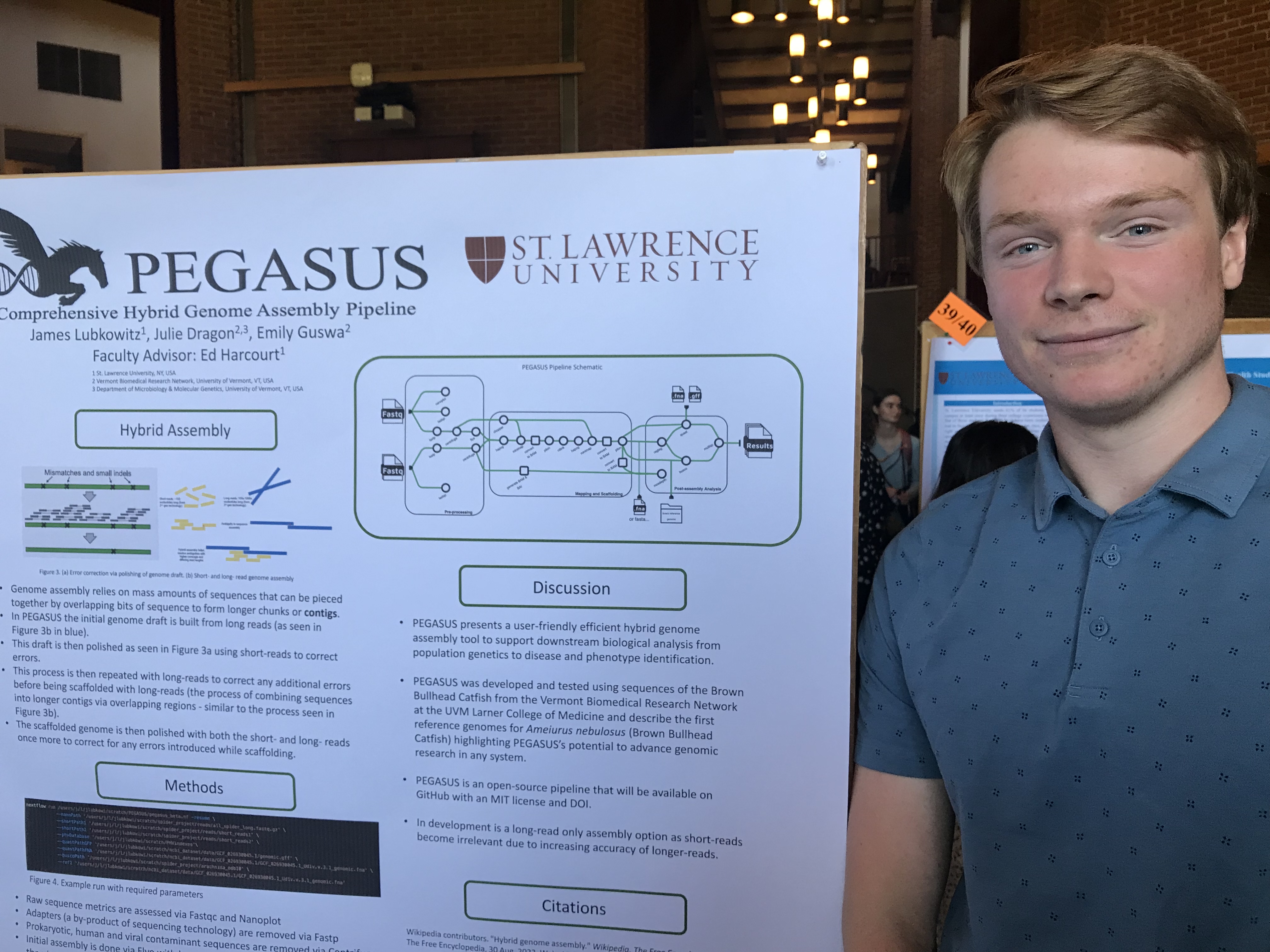 Presenters: Jax Lubkowitz, Faculty Sponsor: Ed Harcourt, Department: Computer Science, Title: “PEGASUS – A Hybrid Genome Assembly Software Using Nextflow Pipelines”