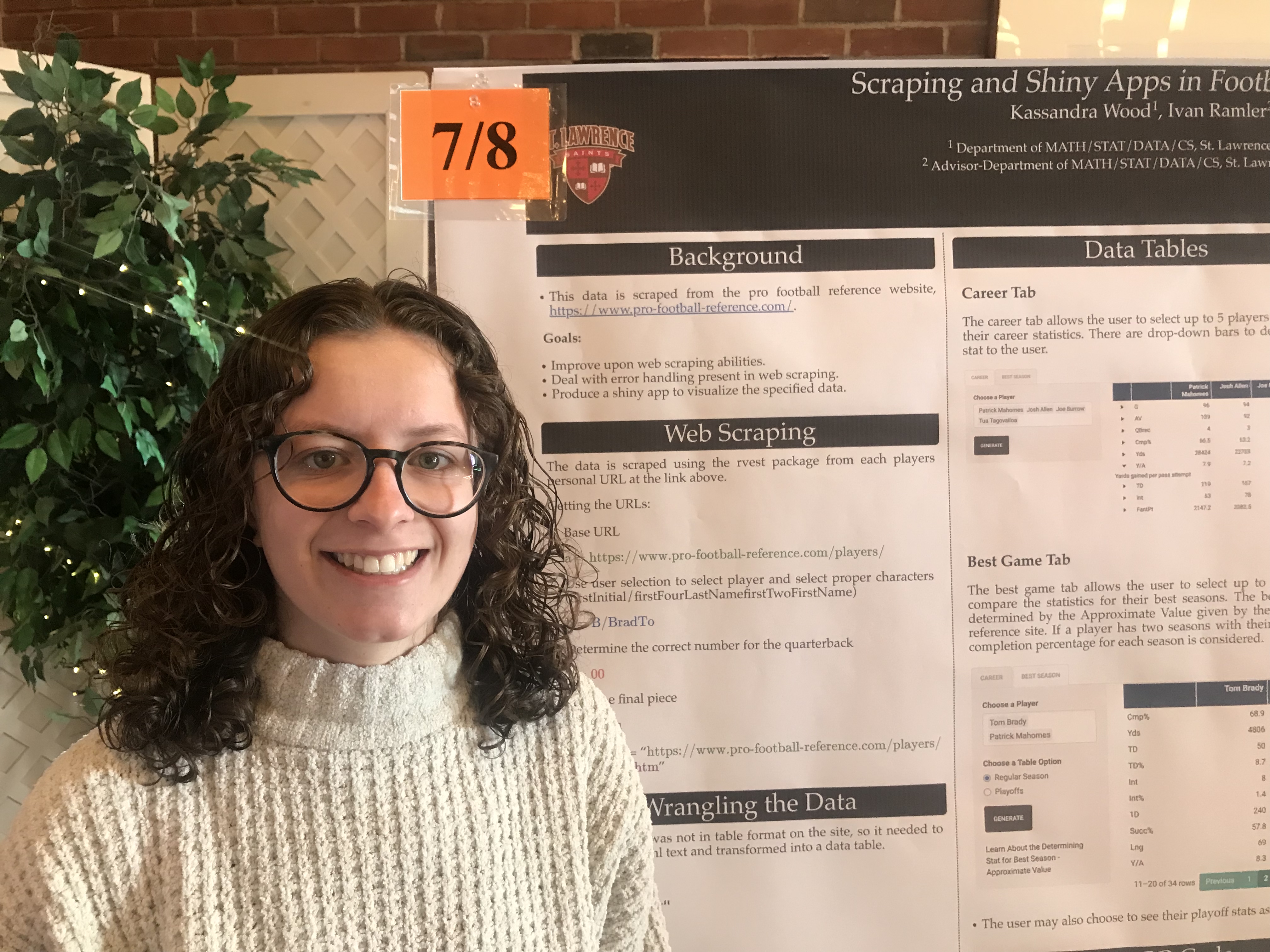 Presenter: Kassandra Wood, Faculty Sponsor: Ivan Ramler, Department: Data Science, Title: “Exploring Football Insights through Web Scraping and Shiny Apps”
