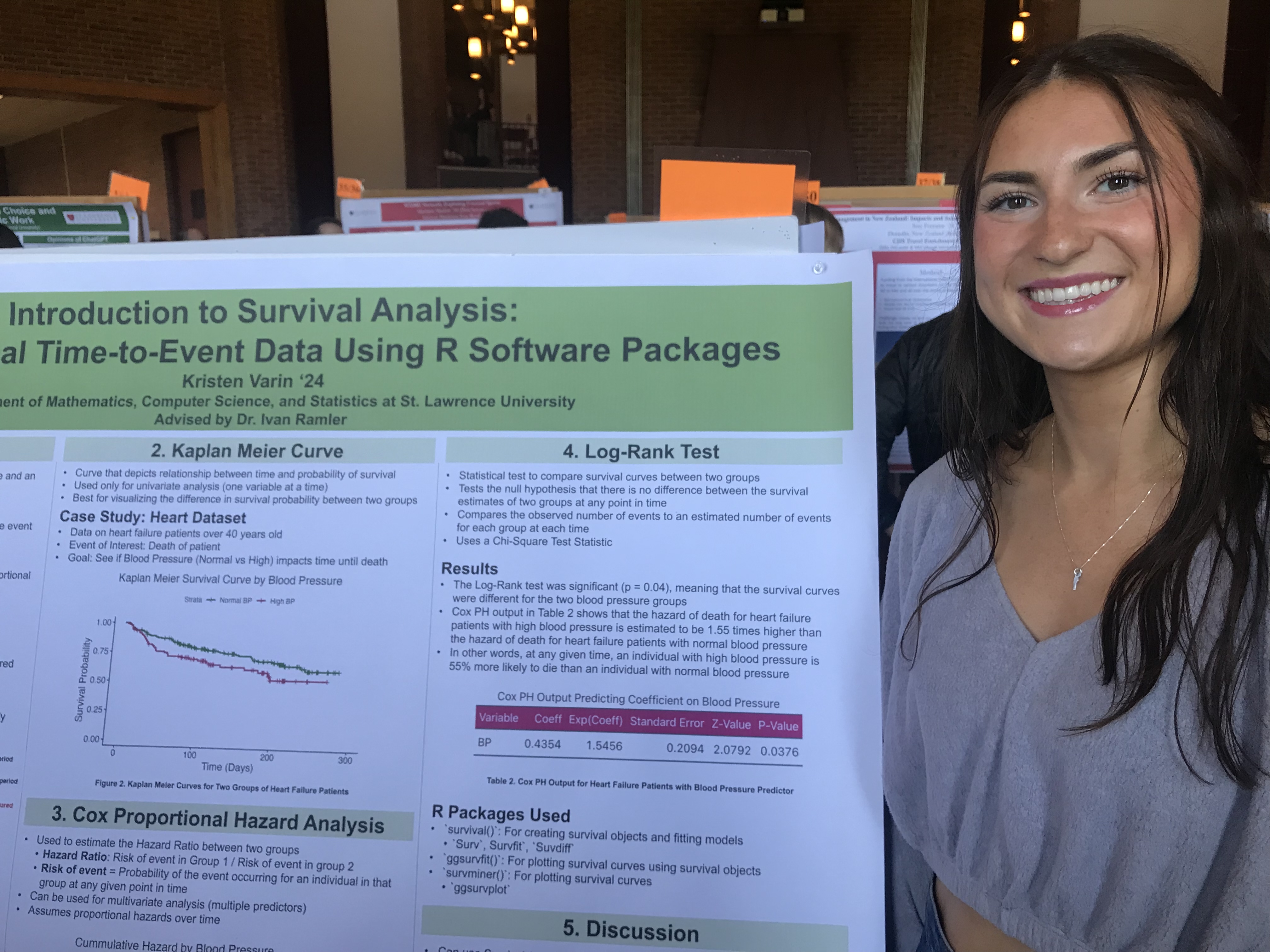 Presenter: Kristen Varin, Faculty Sponsor: Ivan Ramler, Department: Data Science, Title: “Survival Analysis: Modeling Medical Time-To-Event Data Using R Software Packages”