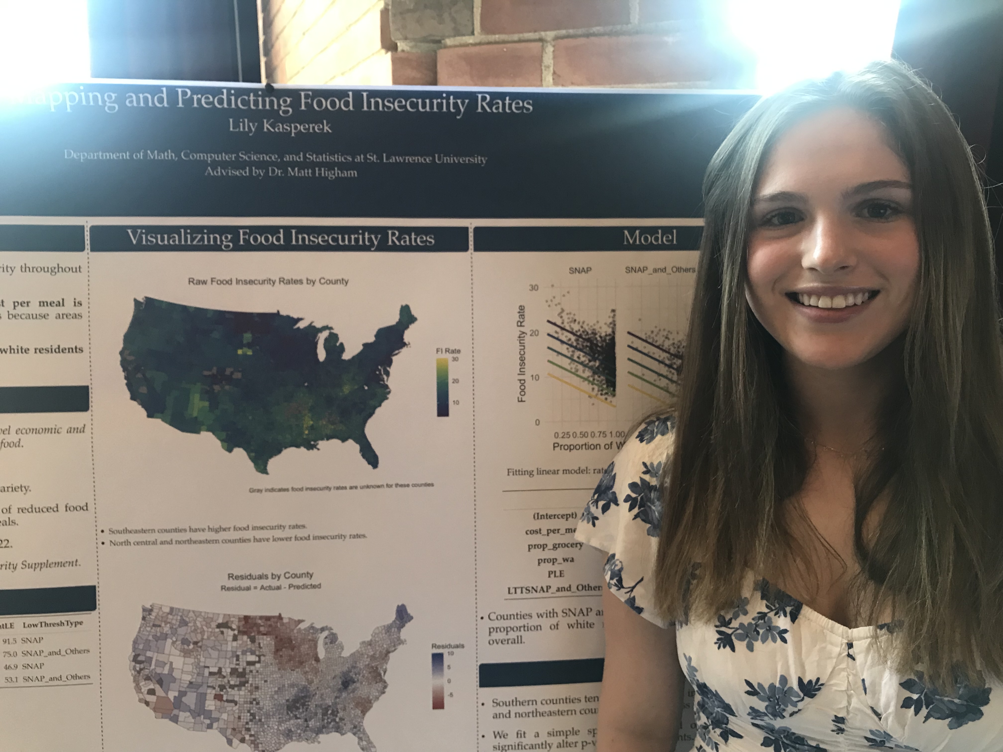 Presenter: Lily Kasperek, Faculty Sponsor: Matt Higham, Department: Statistics, Title: “Mapping and Predicting Food Insecurity Rates”