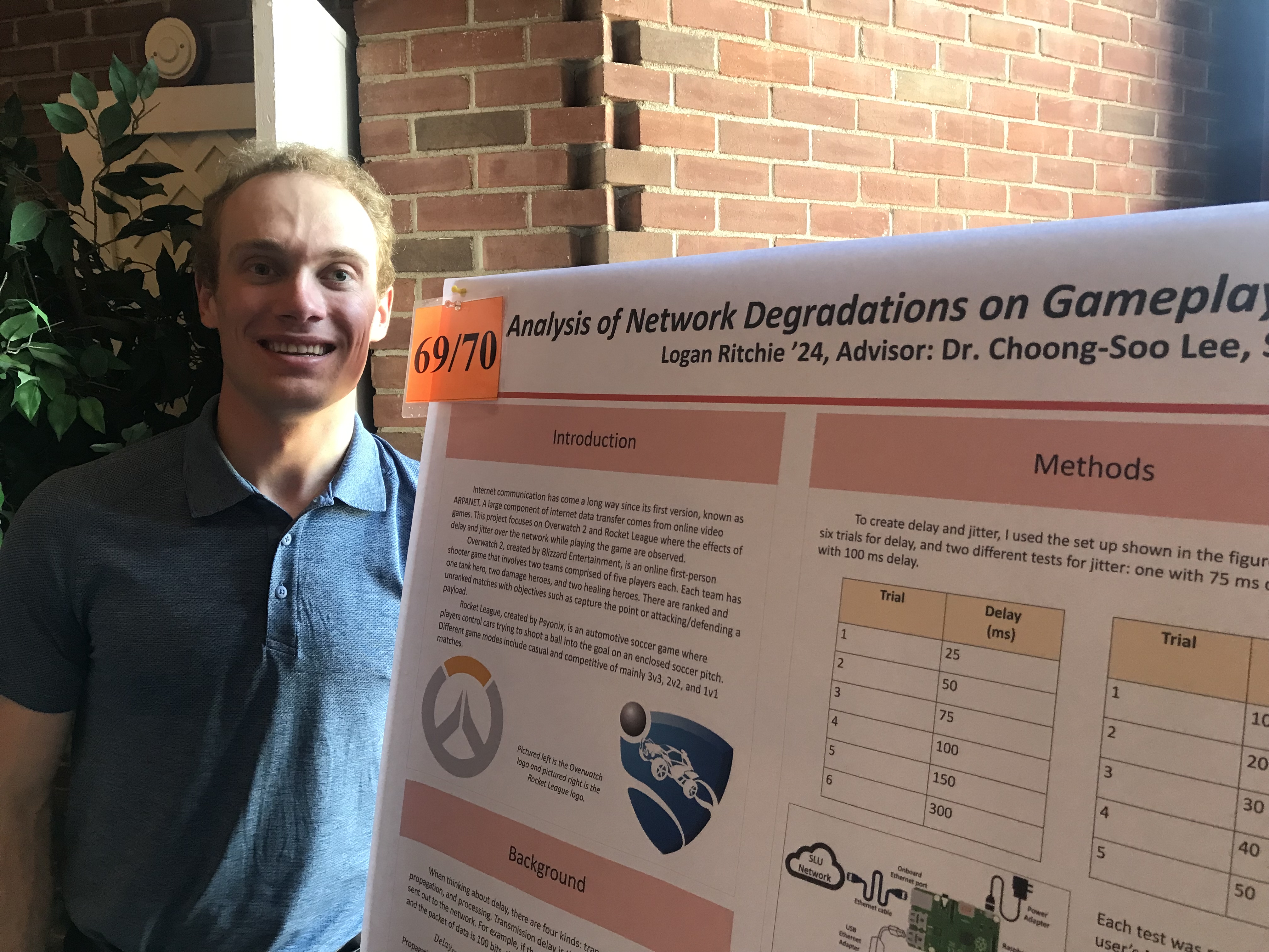 Presenter: Logan Ritchie, Faculty Sponsor: Choong-Soo Lee, Department: Computer Science, Title: “Analysis of Network Degradations on Gameplay: Overwatch 2 and Rocket League”