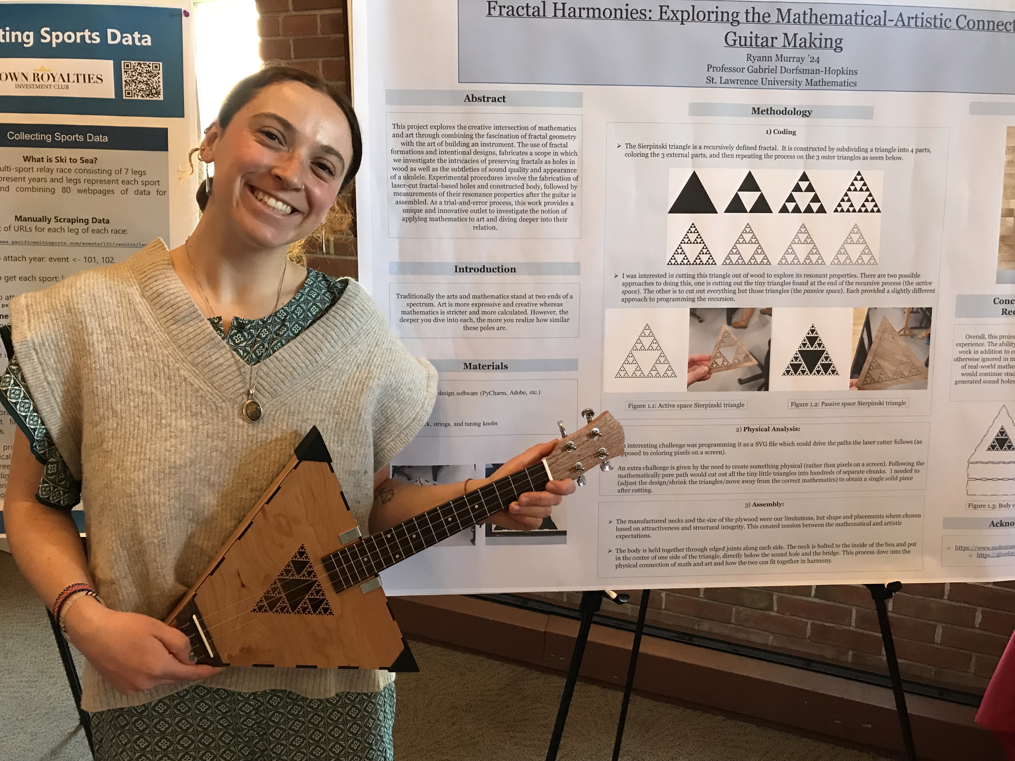 Presenter: Ryann Murray, Faculty Sponsor: Gabriel Dorfsman-Hopkins, Department: Mathematics, Title: “ Fractal Harmonies: Exploring the Mathematical-Artistic Connection in Guitar Making”