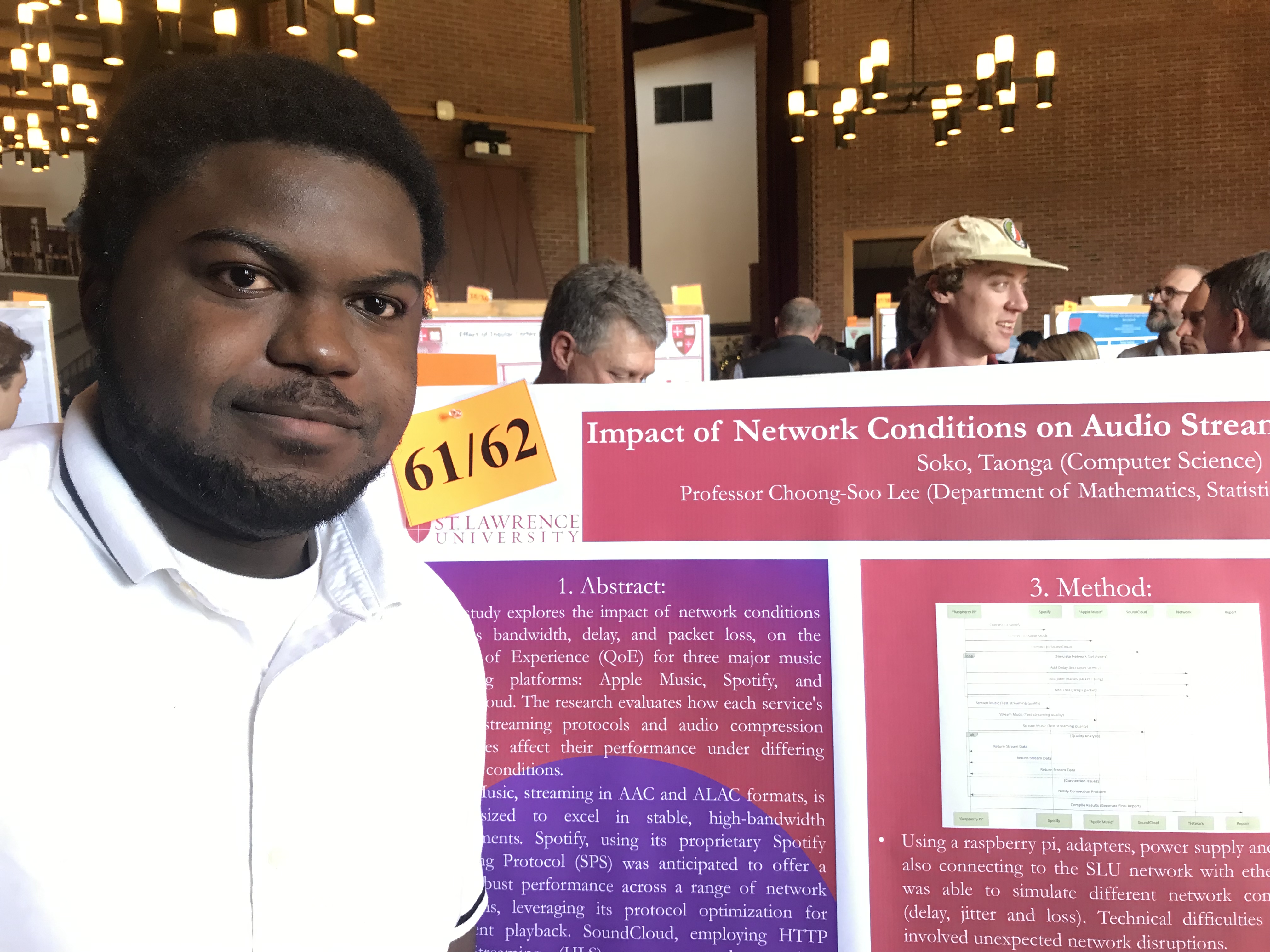 Presenter: Taonga Soko, Faculty Sponsor: Choong-Soo Lee, Department: Computer Science, Title: “Comparing Network Performance Metrics Across Apple Music, SoundCloud, and Spotify”