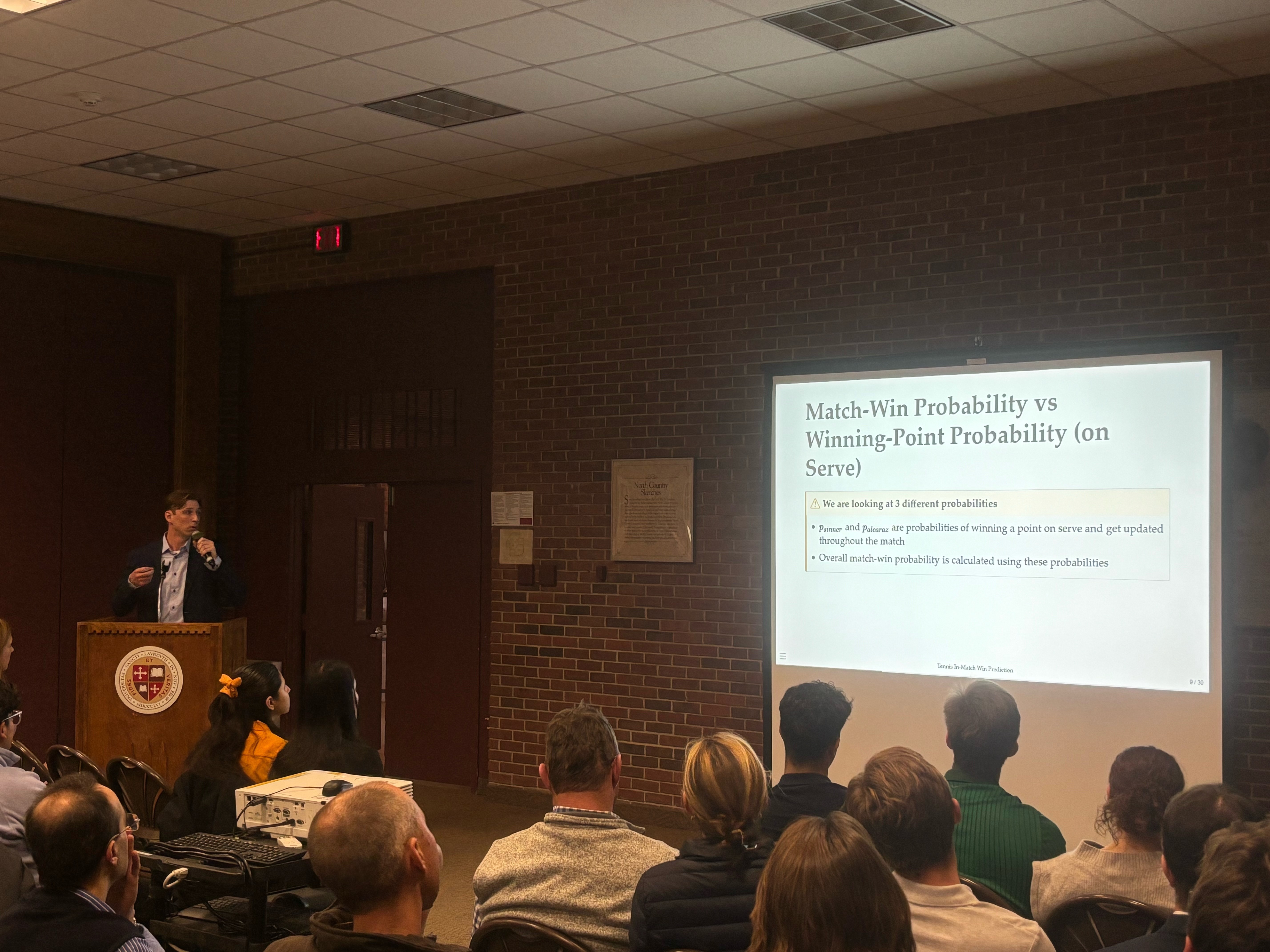 Presenter: Ben Moolman, Faculty Sponsor: Matt Higham, Department: Statistics, Title: “Estimating Tennis In-Match-Win Probability with Bayesian Modeling”