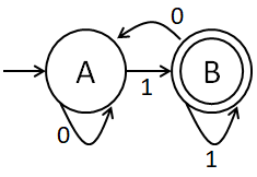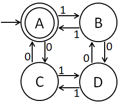 This diagram [1] is called a finite automaton. You give it a sequence of bits (0s and 1s), and its job is to either accept or reject that sequence.