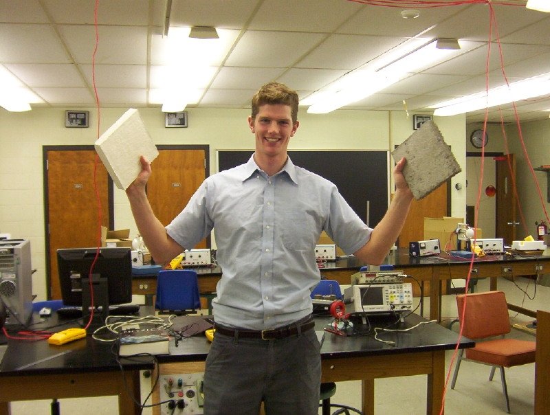 Abstract: Radioactive radon gas is emitted from concrete and enters indoor environments, causing a health hazard. I assessed the effectiveness of using different covering materials to prevent or reduce radon emission from concrete. Sample concrete slabs were made form Quikrete ready mix concrete and covered with linoleum tile, paint, and plastic sheeting. I measured the decays of radon in an enclosed space containing concrete slabs. In general, the addition of a covering material to a slab reduces the equilibrium level of radon in a closed space by about 50%, compared to uncovered slabs. It appears that an airtight barrier is a simple, yet effective solution. From my results I projected the radioactivity in a typical basement with poured concrete walls. The addition of covering materials to concrete dropped the activity levels to below the United States action level for this common type of room. Covering materials are an effective method for reducing radon levels and meeting national standards for radon in the indoor environment.