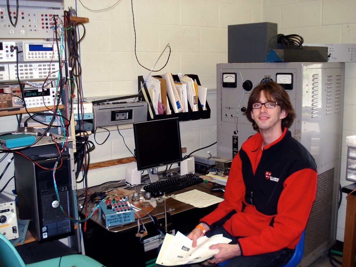 Abstract: For years, the semiconductor industry has conducted quality control of large silicon wafers through the use of four-point resistance measurements. However, a similar four-point probe designed to detect a localized Hall Effect could offer more information about the sample, at a resolution similar to that of the resistance probes in use today. The Hall Effect is the presence of a measurable voltage that is perpendicular to both a current and the magnetic field through which it flows. The aim of this experiment is to determine if a small Hall Effect probe of square configuration would be feasible by measuring the Hall voltage as a function of the ratio between the probe size and sample size.