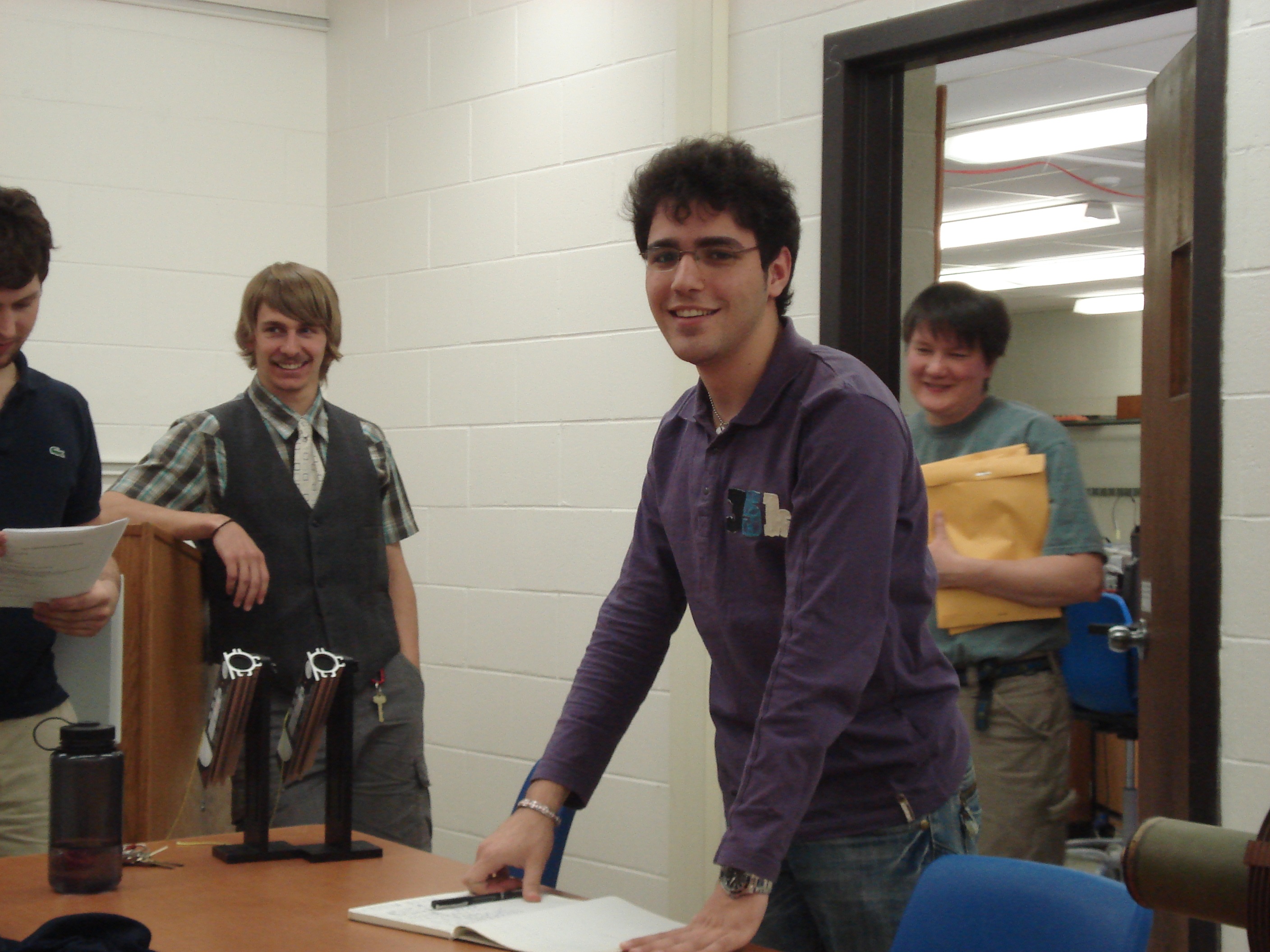 Four students were inducted into Sigma Pi Sigma (ΣΠΣ), the Physics Honorary Society in April 2010: Nassir Abou Ziki '12, Heather Cutler '12, Tim Moore '12 and Brad Williams '12.