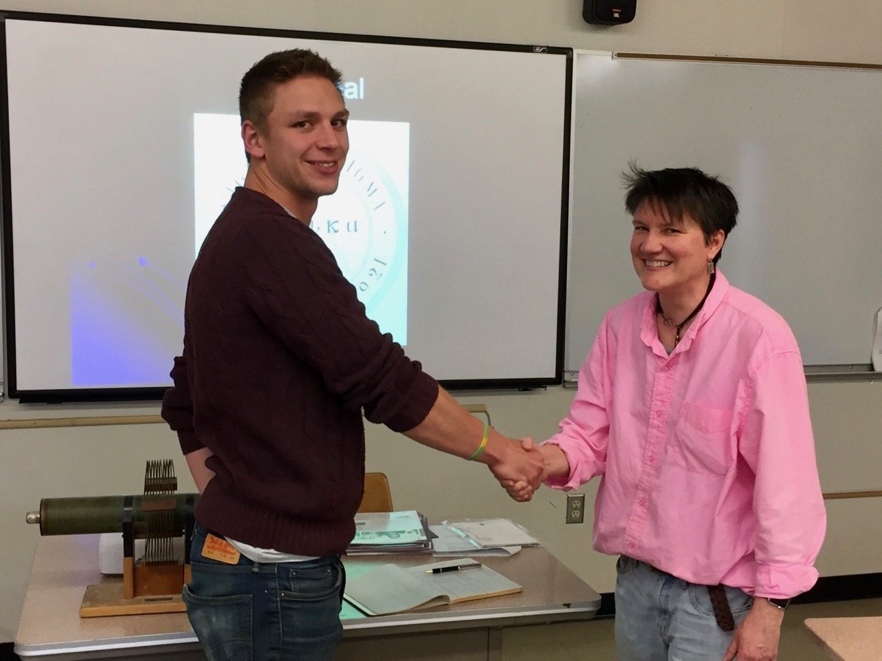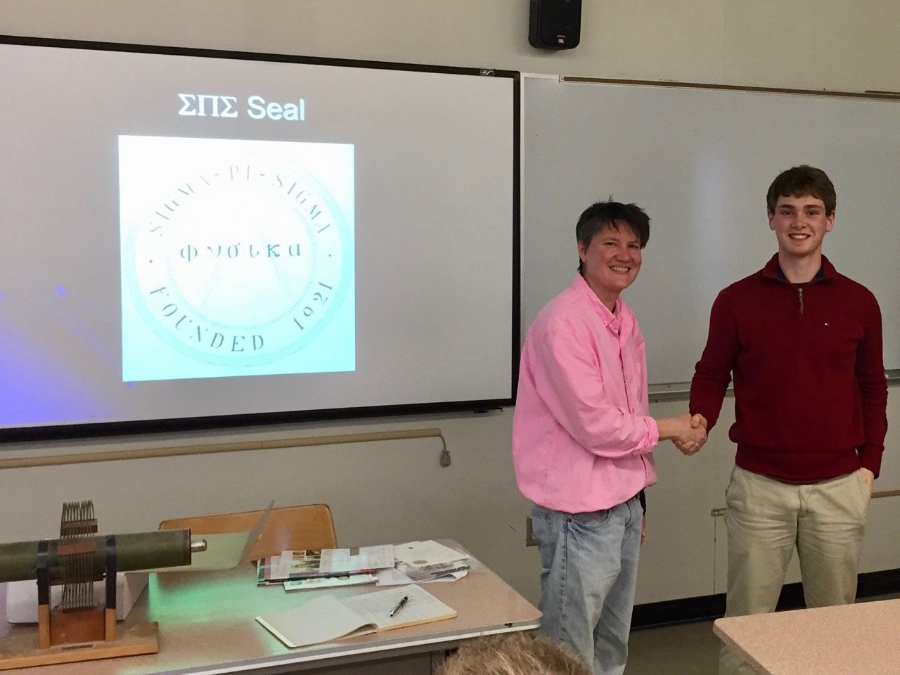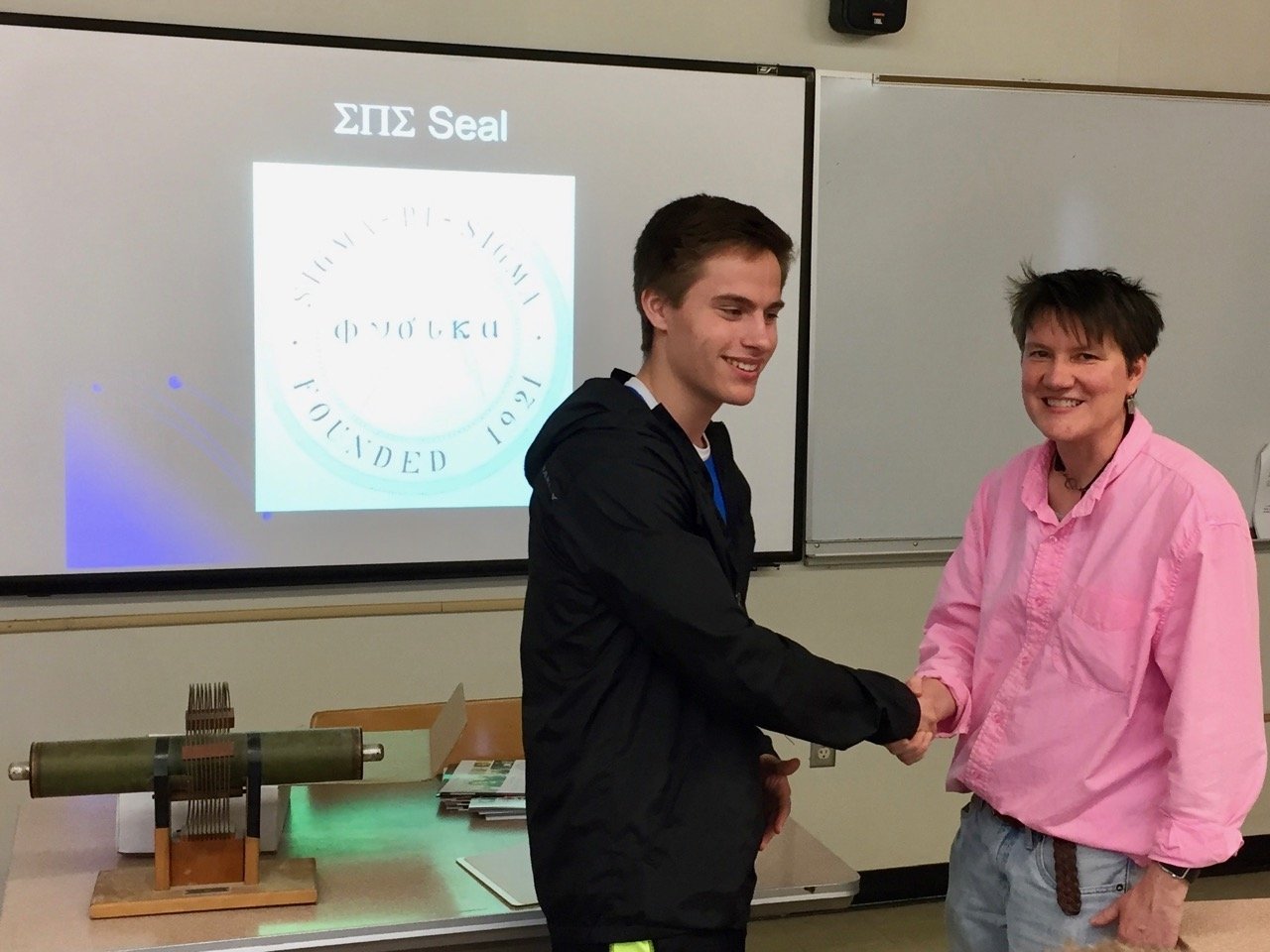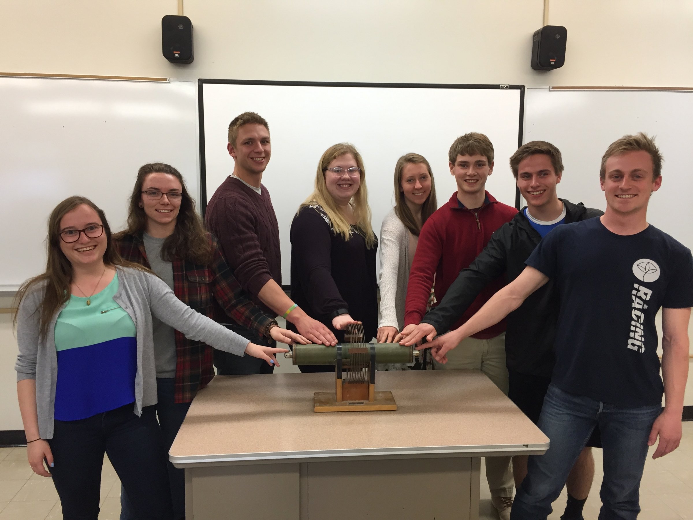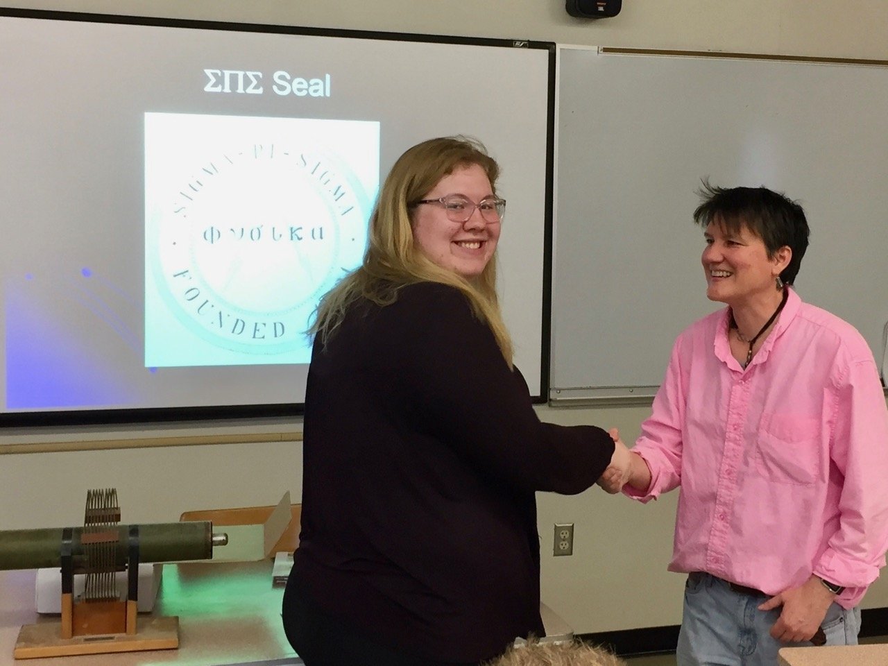 On April 25th, 2017, eleven students were inducted into Sigma Pi Sigma (ΣΠΣ), the Physics Honorary Society: Claire Albrecht '18, Isabel Bogacz '17, Ellis J. (EJ) Curtis, '17, Morgan Doyle '19, Alan Idelkope '19, Stephanie Johnson '17, Emma Kitchner '19, Dustin Ramsay '19, Malakai Takane '18, Alexandra Wagner '19 and Ryan Fletcher '19.