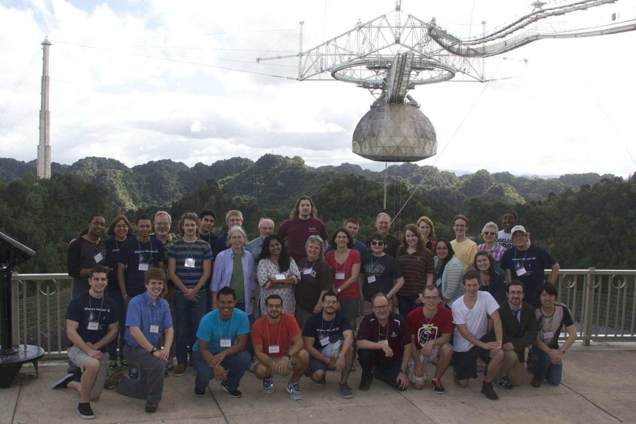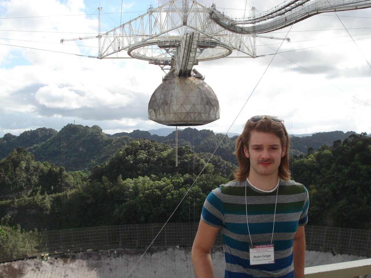The seventh NSF-sponsored Undergraduate ALFALFA Workshop was held at the Arecibo Observatory on January 12 - 15, 2014. The Workshop is part of the NSF-sponsored Undergraduate ALFALFA Team program to promote undergraduate research within the ALFALFA project. Attendees are given tours of the telescope, and operate it during observing runs. The Workshop was attended by 20 students and their faculty mentors from 16 undergraduate institutions. Bryan Geiger '16 attended with SLU astronomers Dr. Aileen O'Donoghue and Jeffrey Miller. Bryan attended the talks, worked in and presented the results of group projects, and had a chance to run the controls of the largest single dish radio telescope in the world.