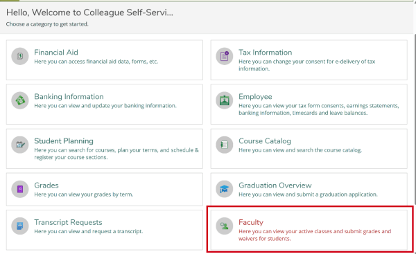 - Log into Self-Service/APR2. Select “Faculty” from the main screen.
