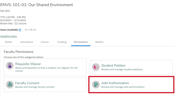 - By granting an add authorization, you will be able to override your course cap, pre-requisites and course restrictions. You do not need to contact the Registrar’s Office to increase your course cap through use of this tool.