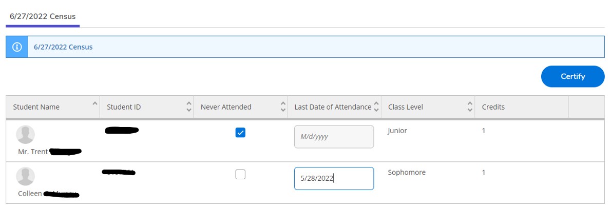 - If a student stopped attending your class, then enter a "Last Date of Attendance."