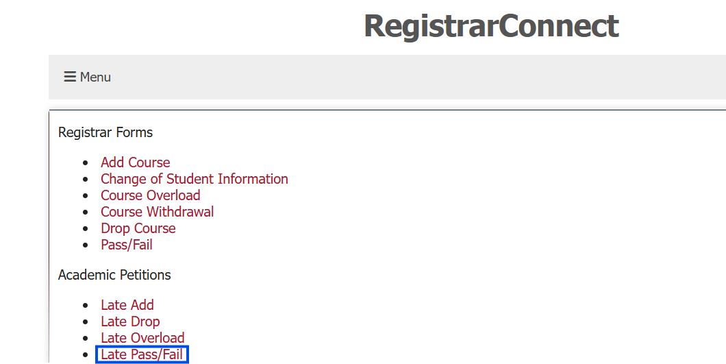Click on the "Pass/Fail" link under the Registrar Forms heading: