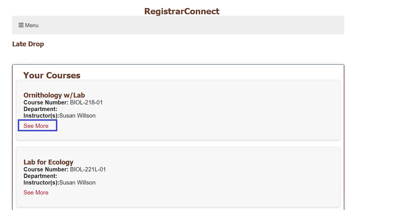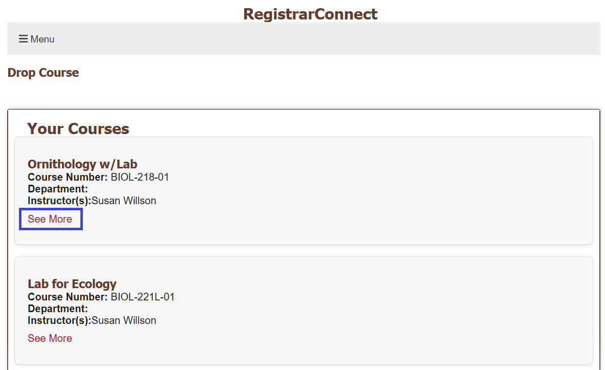 Click on the "See More" link at the bottom of the course section you wish to drop: