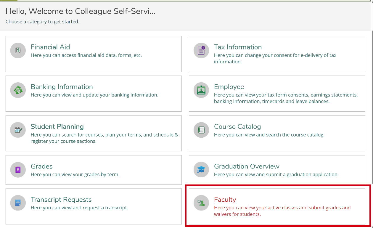 - Log into Self-Service/APR2. Select “Faculty” from the main screen.