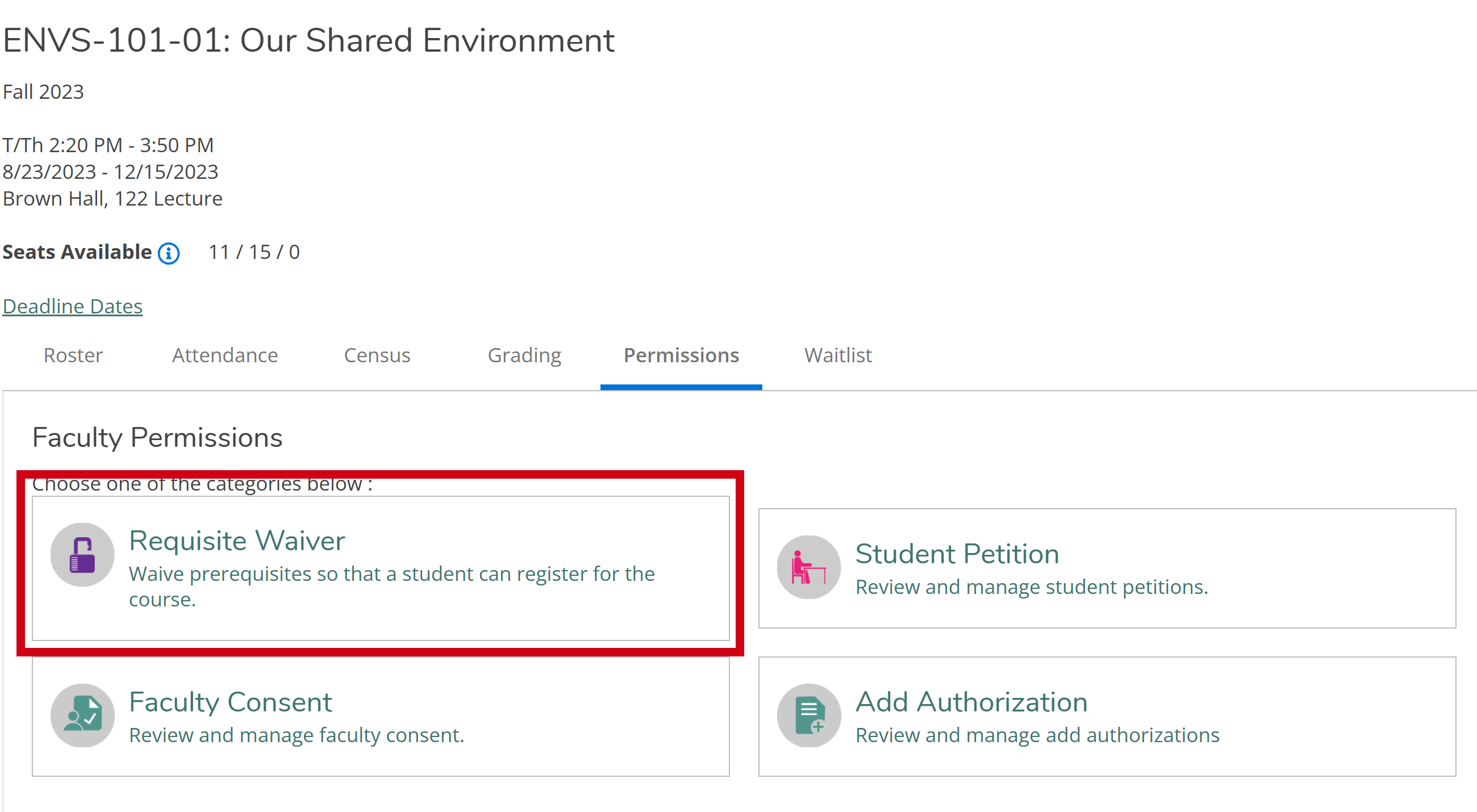 Students will email to request permission to add your course during the add/drop period. You may have set current course restrictions, such as “No SR’s”, “No FYs”, etc., but you have now decided you would like to allow Seniors or First Years in your course. Before you email the student to inform them they may add the course, you must waive the pre-requisite requirements, and grant them authorization through the Self-Service/APR2 system.