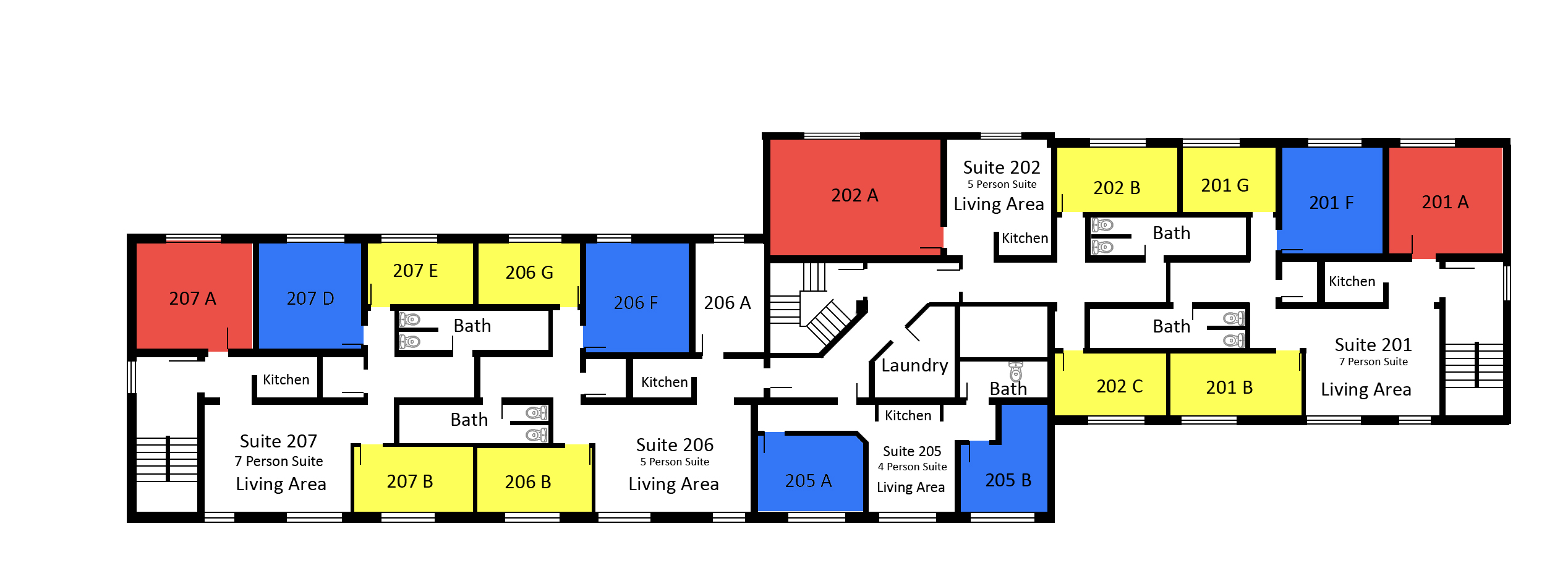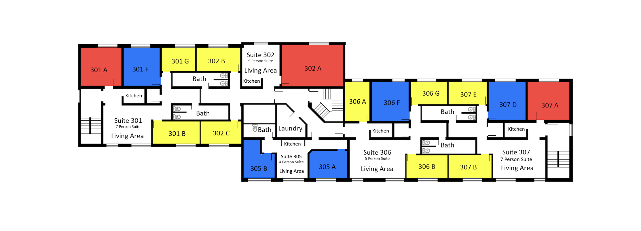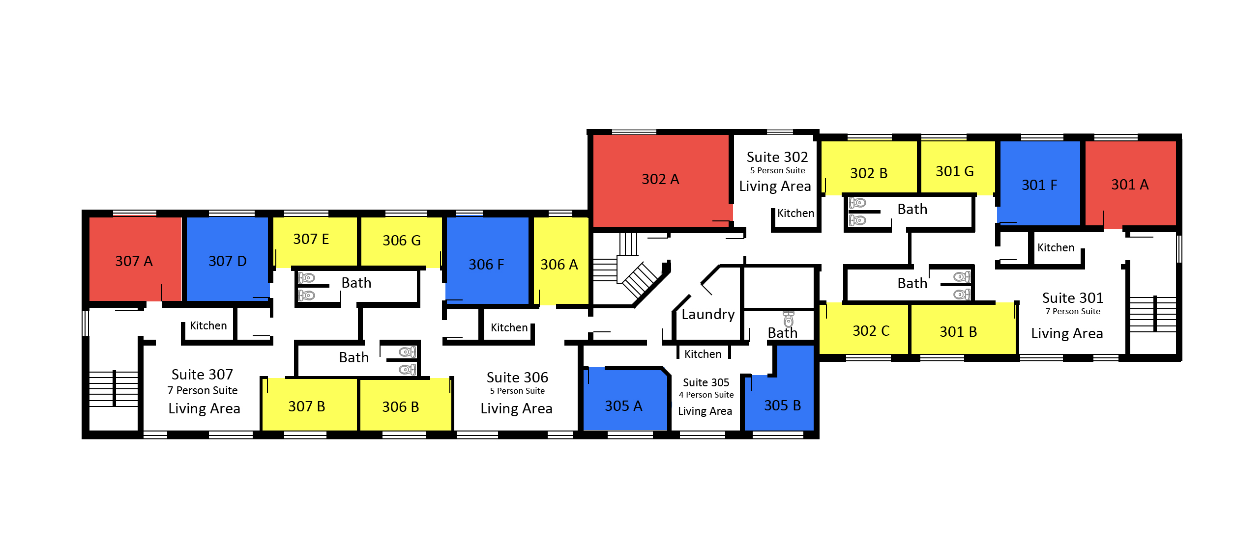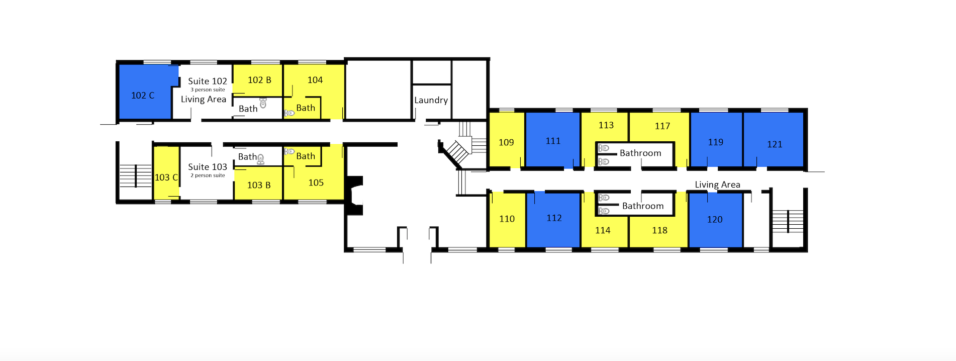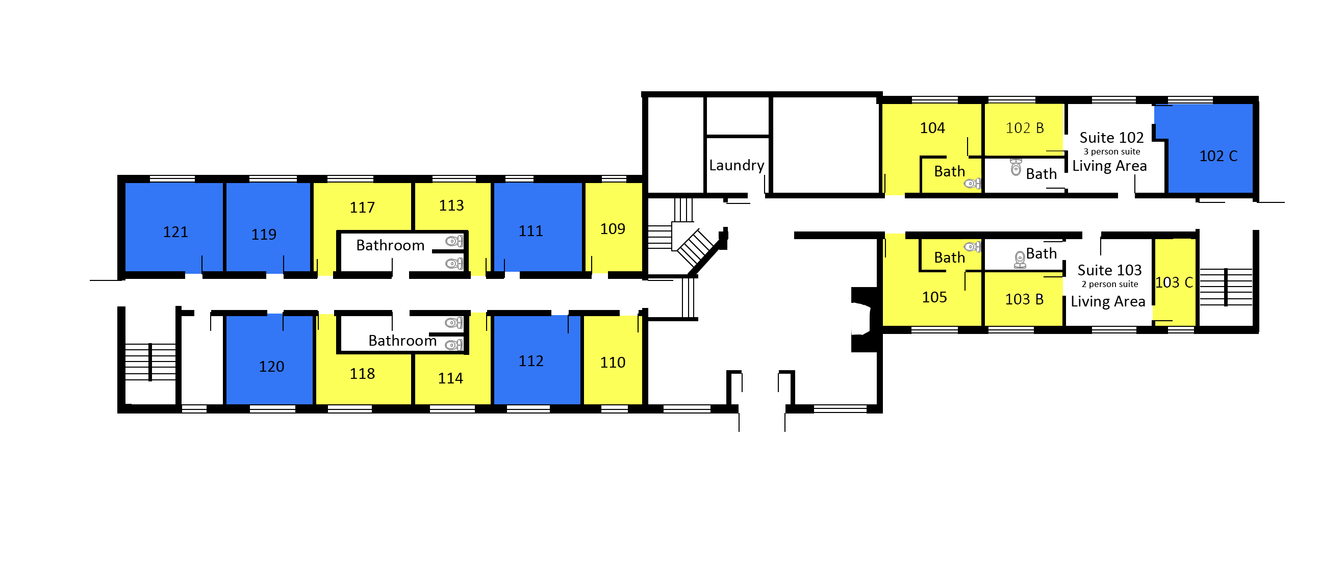Bathrooms: Each suite in Hulett and Jencks has a restroom for residents of that suite to share. There are also two restrooms on the first floor in each building, with one designated for women and one for men. All restrooms have showers, sinks, and bathroom stalls.