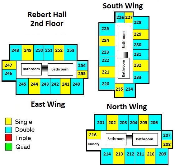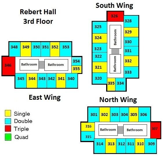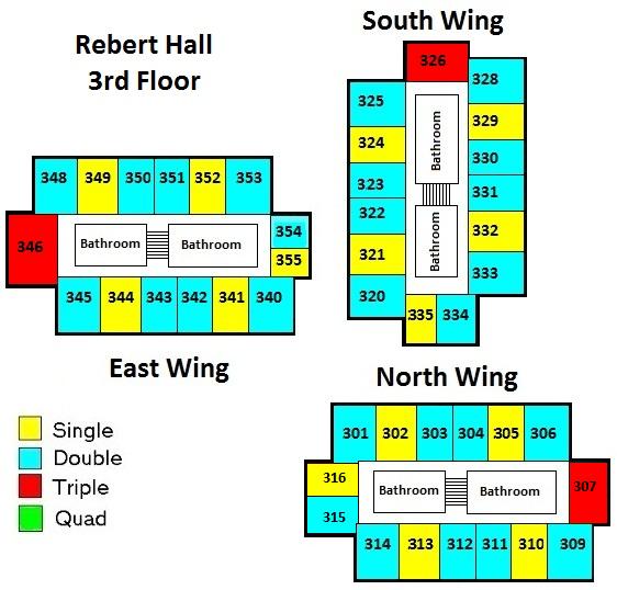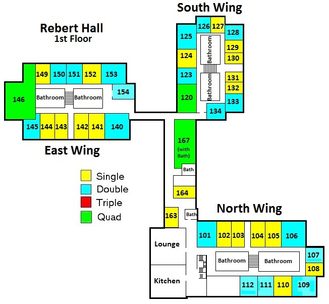 Rebert Hall is located across from the Student Center and primarily houses first-year students. Most of the rooms are singles and doubles.