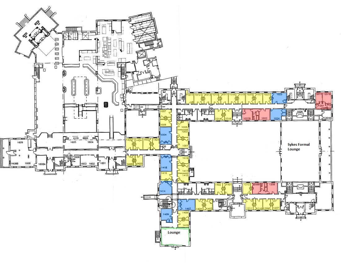 Community Areas: Sykes has many different community spaces. Some of the most commonly-used spaces are the formal lounge, the reading room, and the zen garden near the formal lounge. There building also includes 4 communal kitchens.