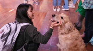 Interacting with animals has been shown to decrease stress. That's why we offer Pet De-Stress events every Friday while classes are in session. Students can stop by to spend time with dogs and cats, plus chat with each other and the faculty and staff volunteers who bring their animals to this popular program.
