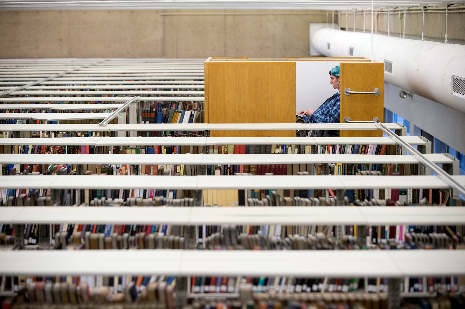 It turns out a little elevation can be good for the brain. For a different perspective and fewer distractions, climb up into one of our treehouses among the stacks in Owen D. Young Library.
