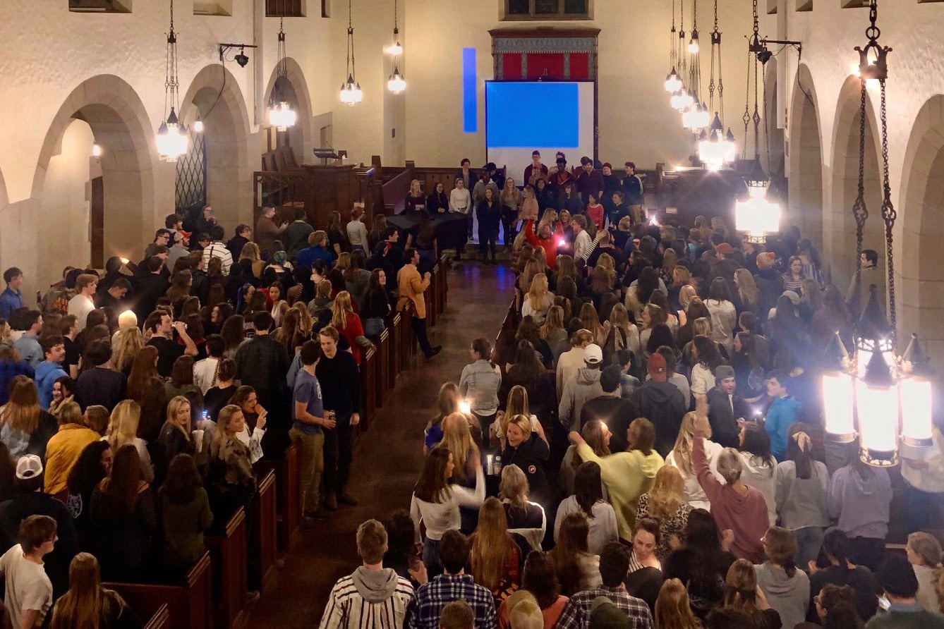 One hundred nights before commencement, the senior class gathers in Gunnison Memorial Chapel to reflect on years passed and be together one last time before they flip their tassels in May.